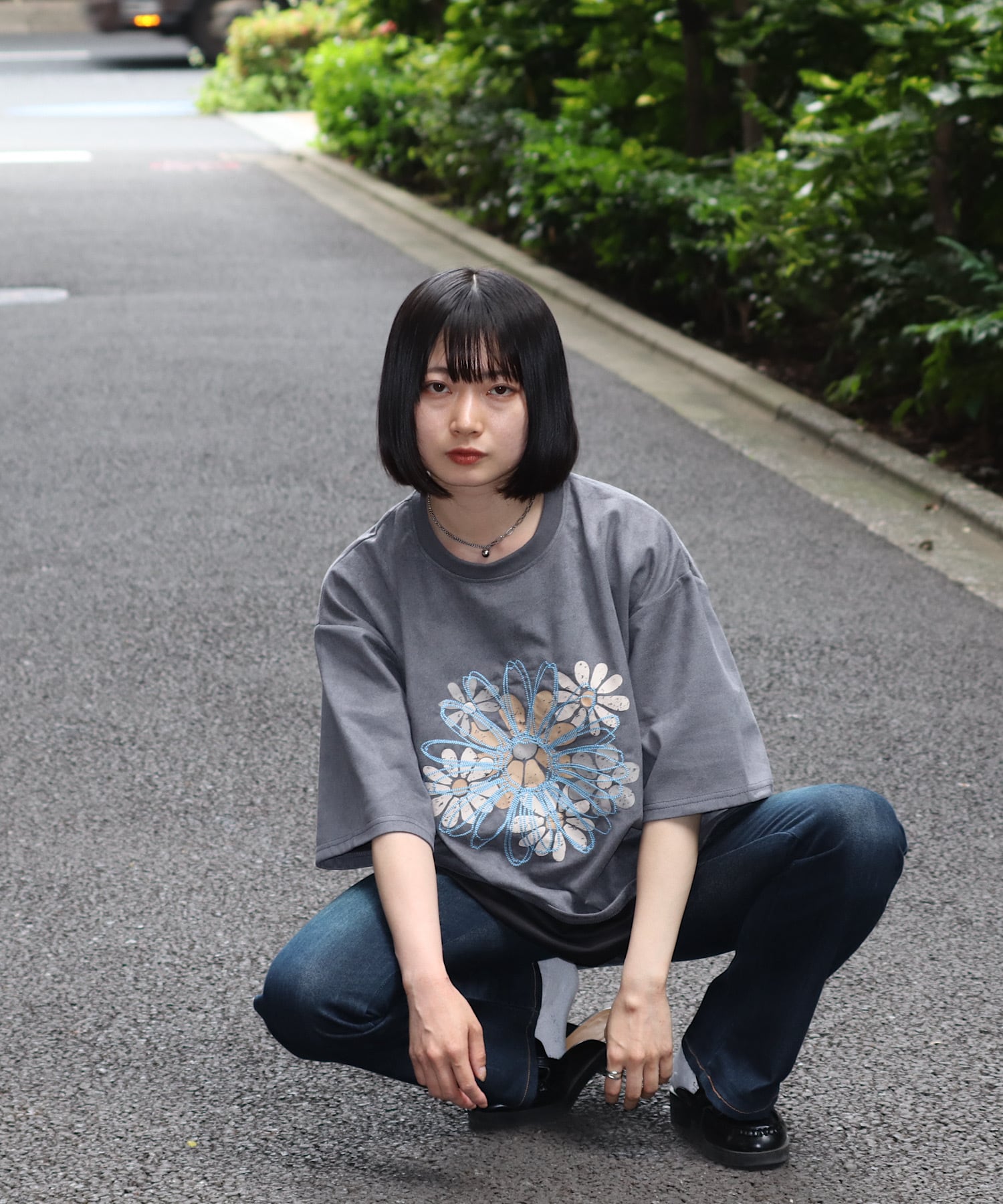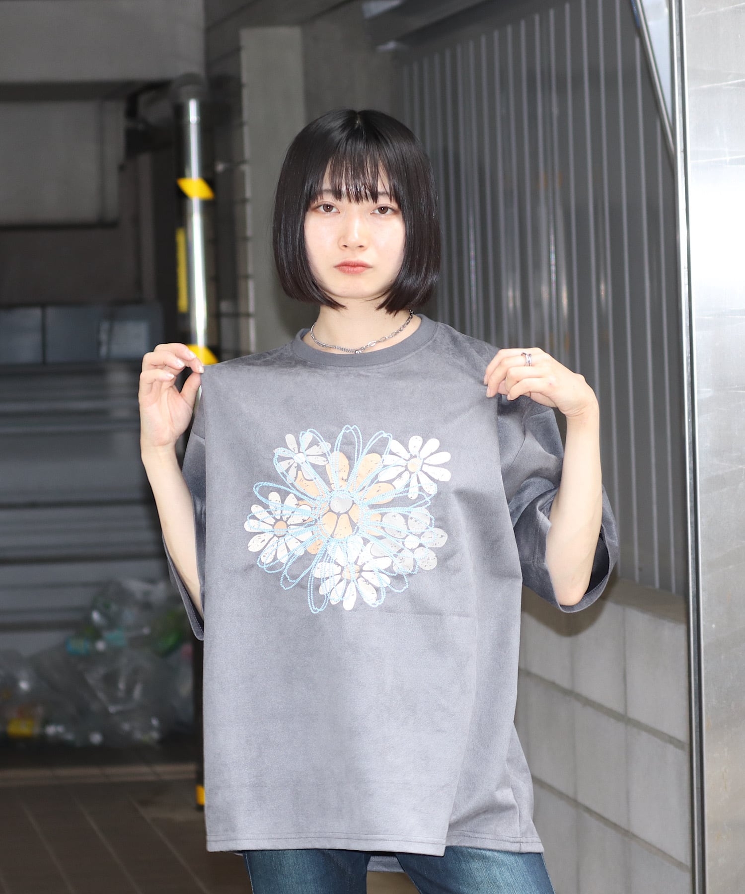 ATELANE Light suede punch flower T (GRY) 25A-14121