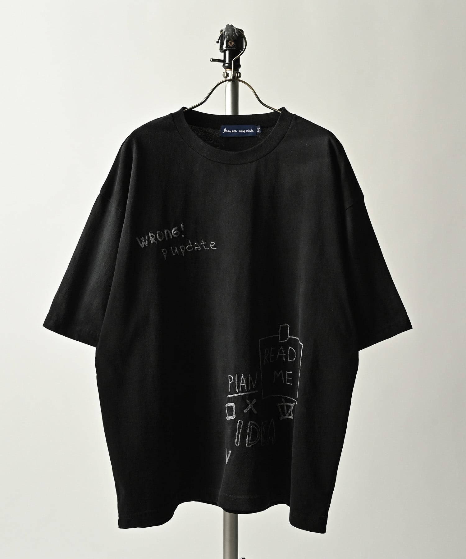 many men many mind Vintage style spray finish chain embroidery TEE (BLK) M2514032
