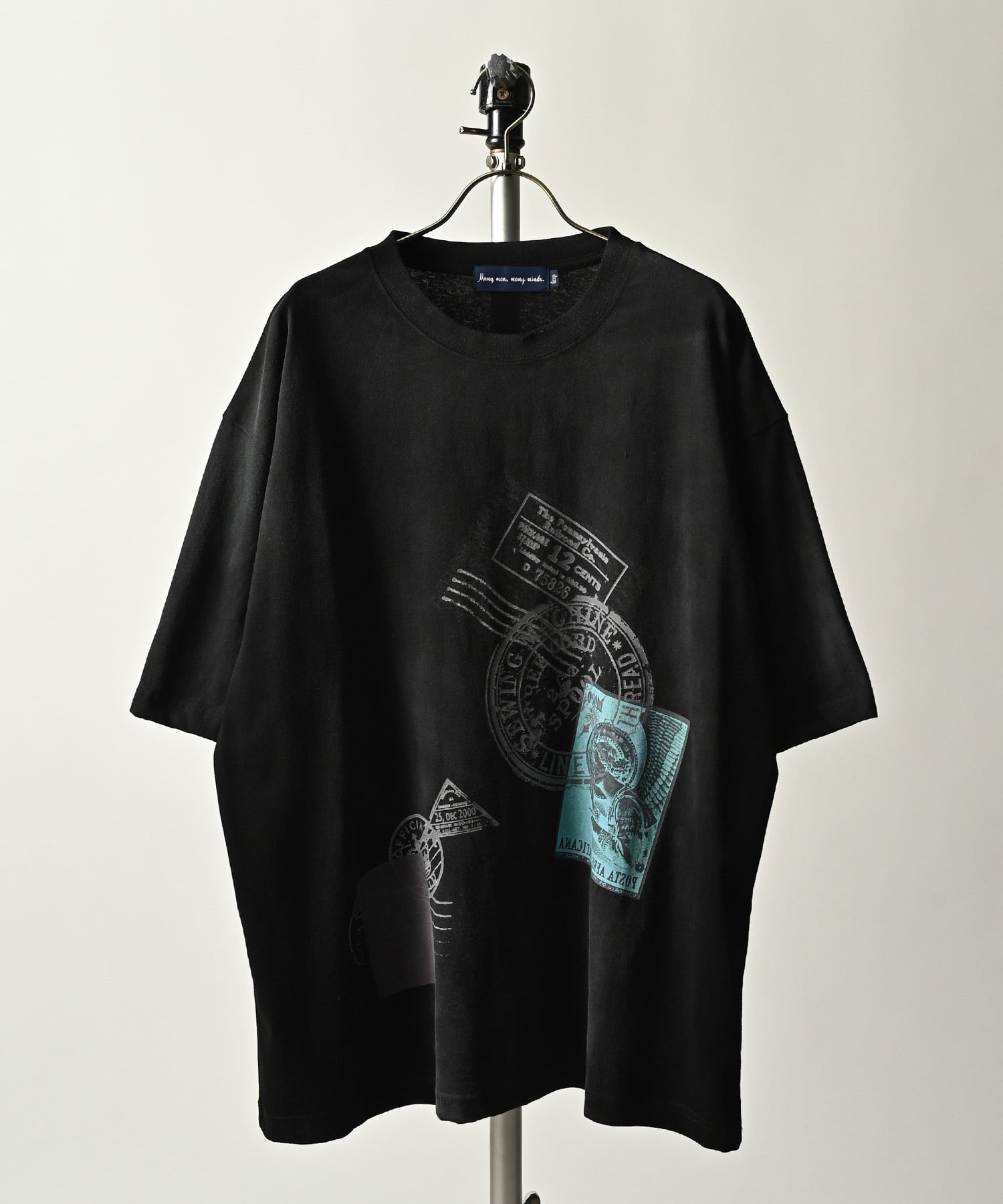many men many mind Vintage style spray finish stamp print TEE (BLK) M2514031