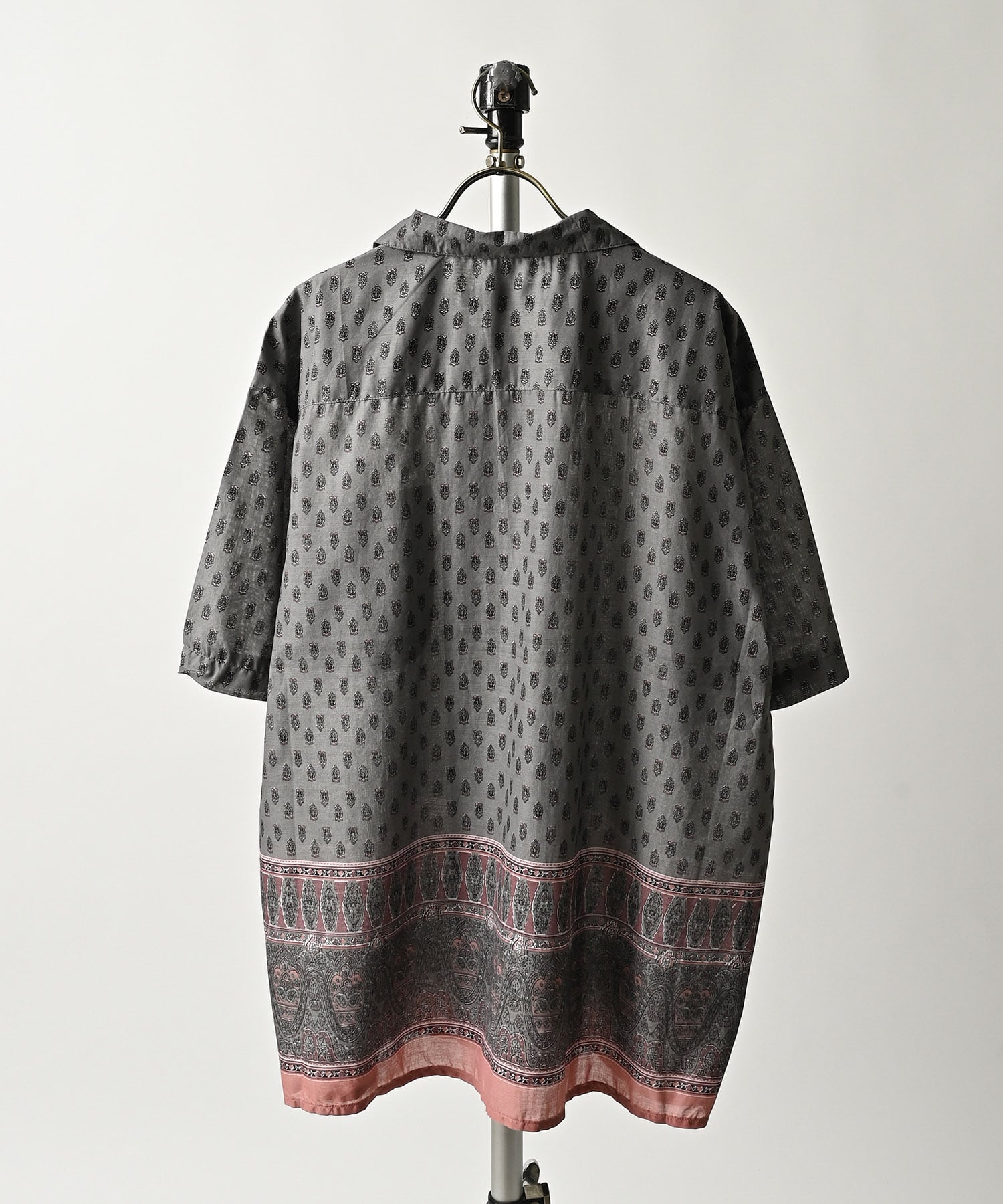 many men many mind Cotton voile Provence pattern open collar shirt (CHA) M2515003