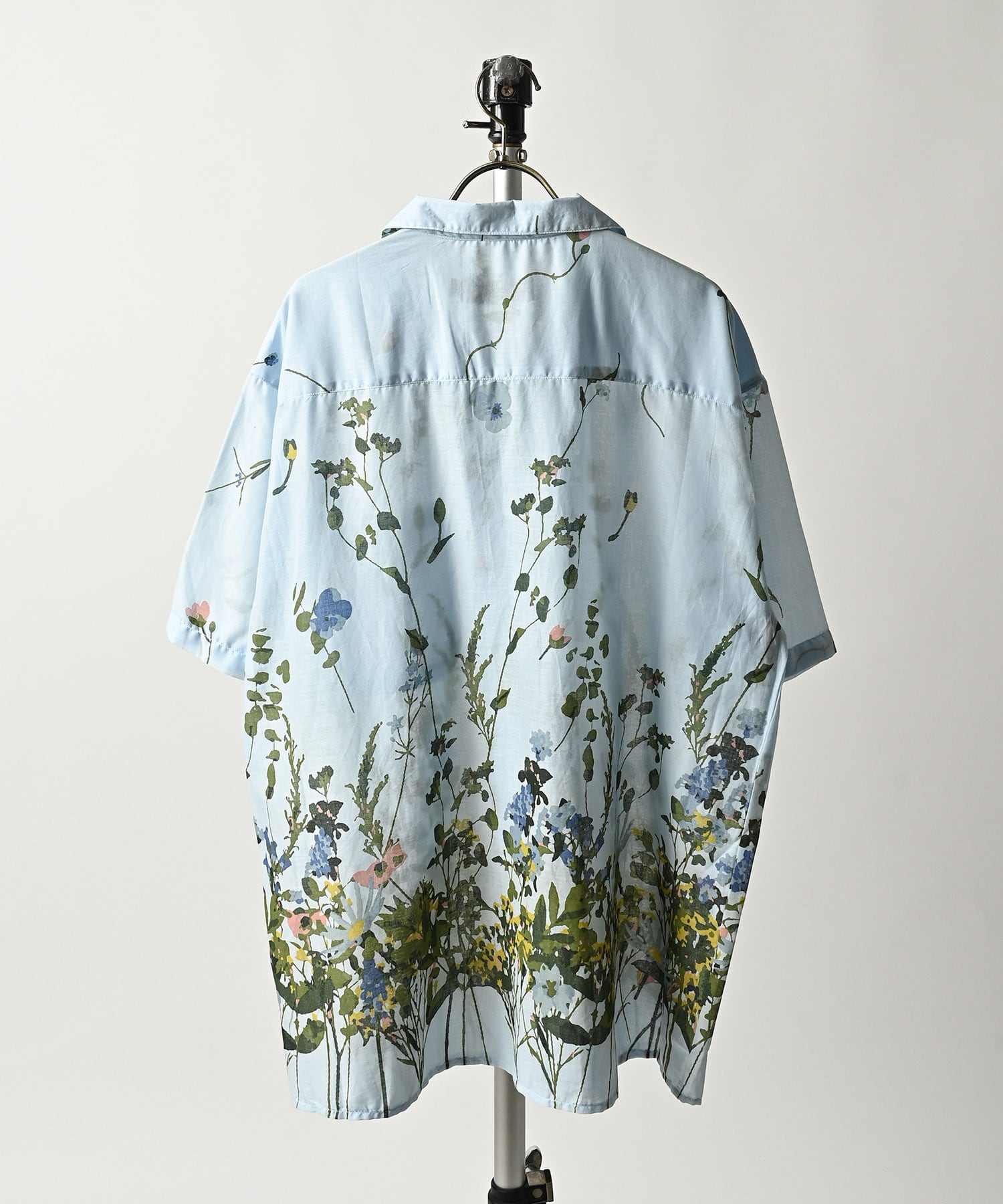 many men many mind Cotton voile flower pattern open collar shirt (SAX) M2515004