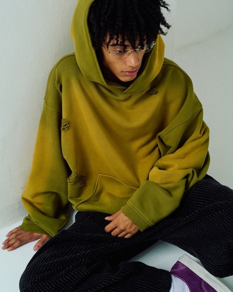 ADAM PATEK aged green damage pullover hoodie (GRN) AP2524034
