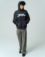 ブラックデニム素材を使用したワイドスラックス。