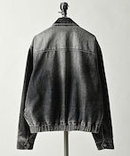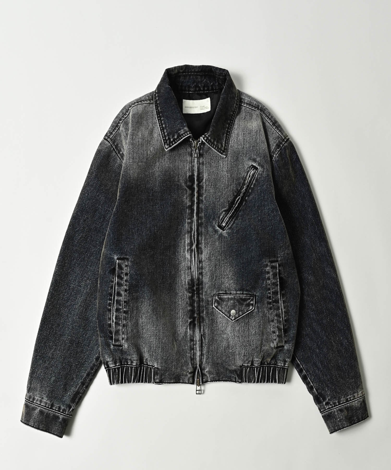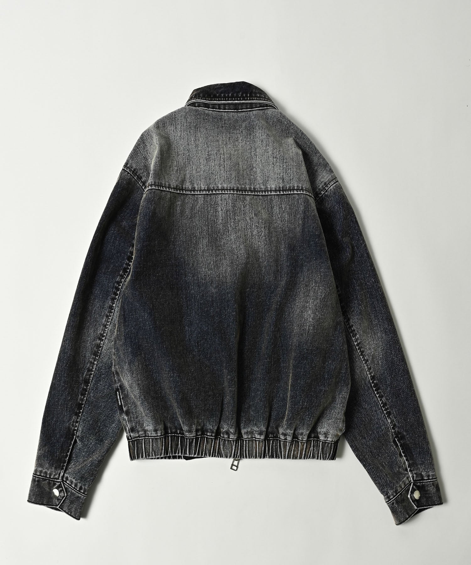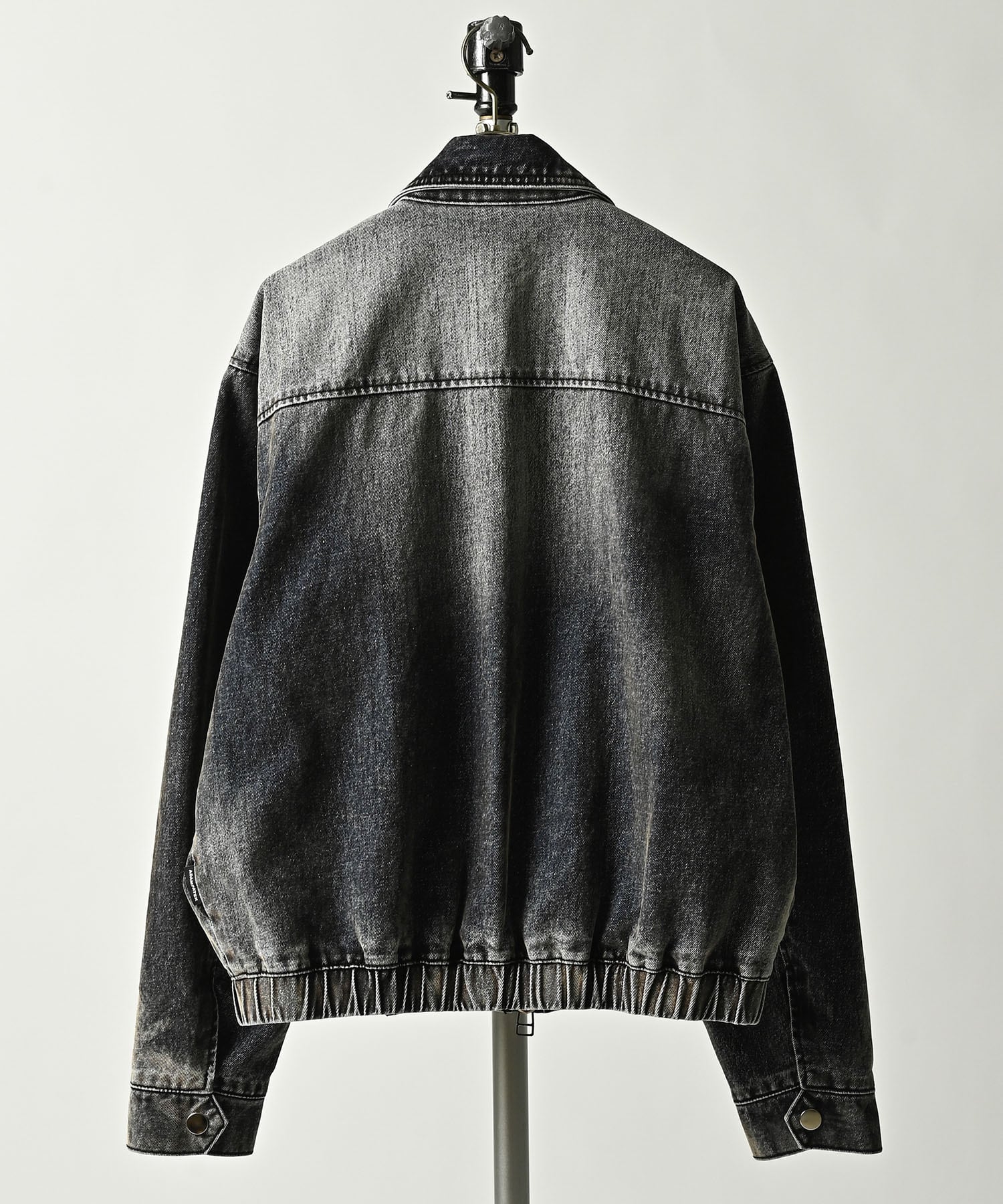 フロッキー加工を施したデニム素材を使用したブルゾン。
