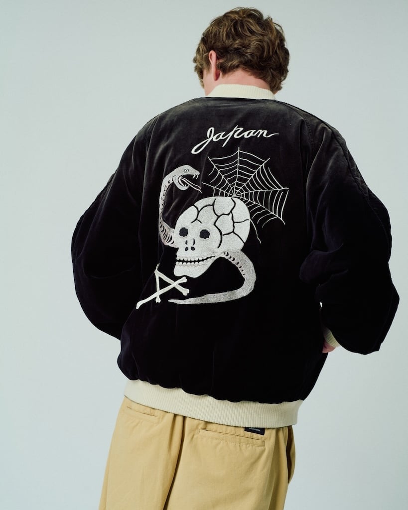 別珍面は、人気の蛇髑髏(ヘビドクロ)柄を大胆にあしらい、
