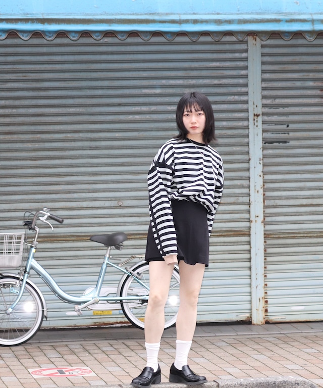 ATELANE Ribbed Color Border Long Tee/Heavyweight (BLK/GRY) 25A-24041