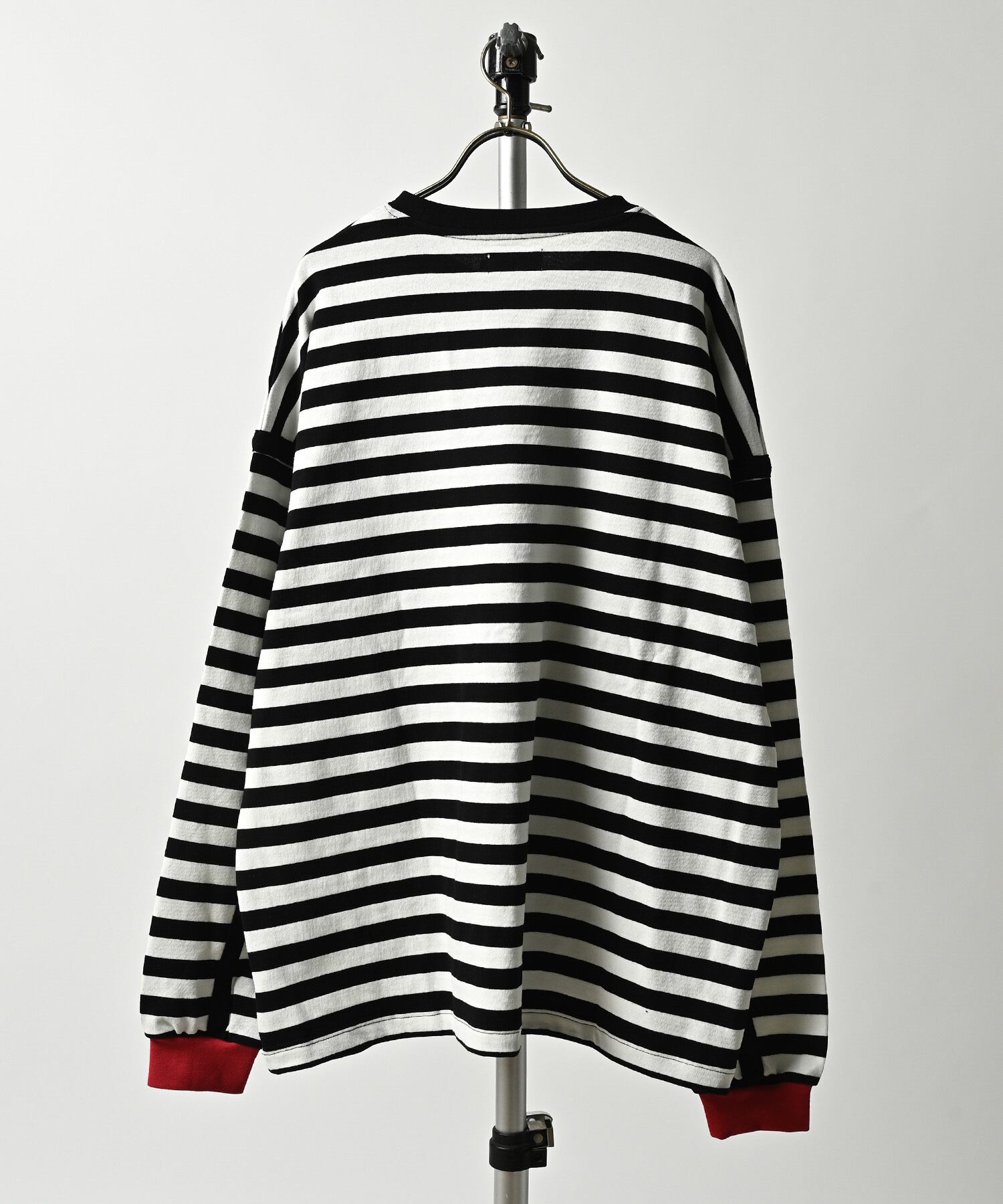 クラシックなボーダー柄に加え、袖口の配色リブをアクセント