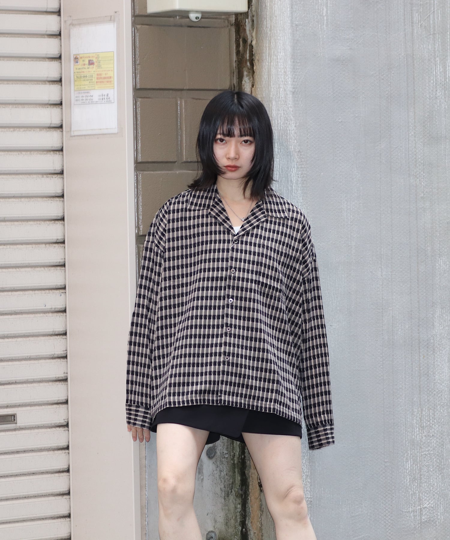 ゆったりとしたシルエットと落ち着いたチェック柄が魅力の
