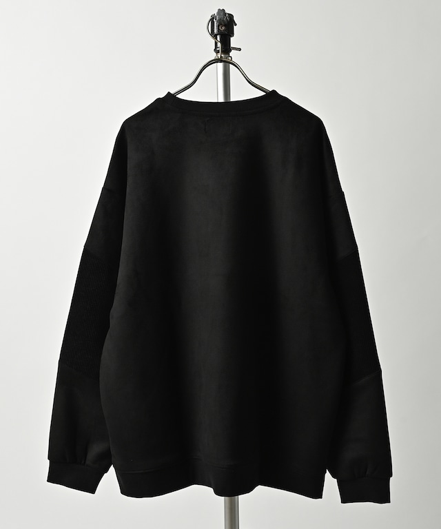 ATELANE Faux suede x corduroy switching crew neck (BLK) 25A-24013