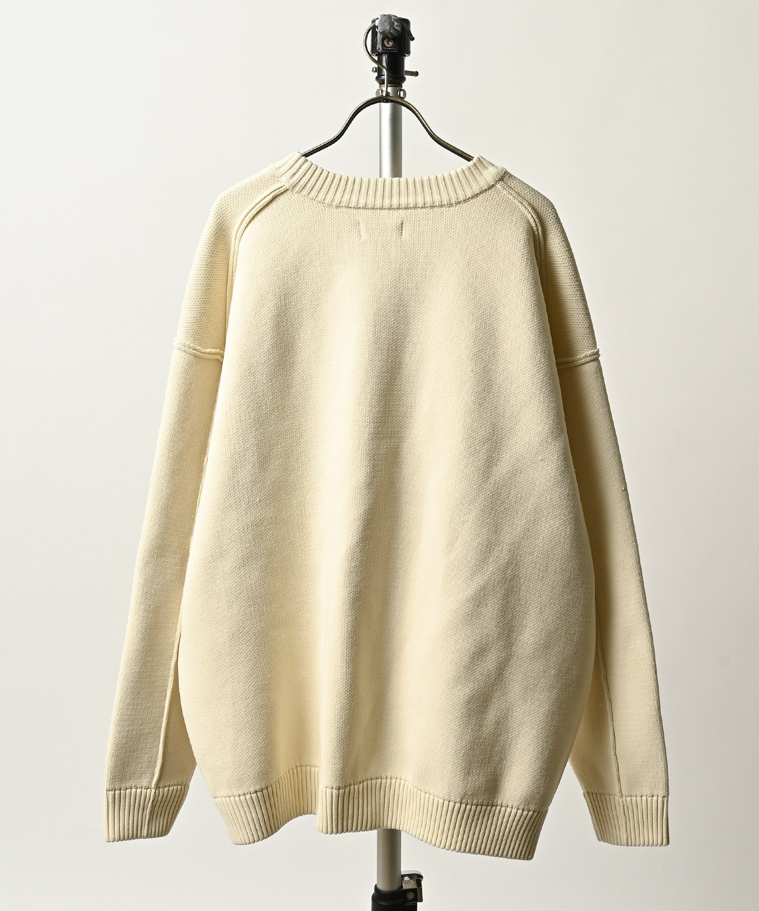 程よいオーバーサイズ感で、暖かみのある編み目が印象的。