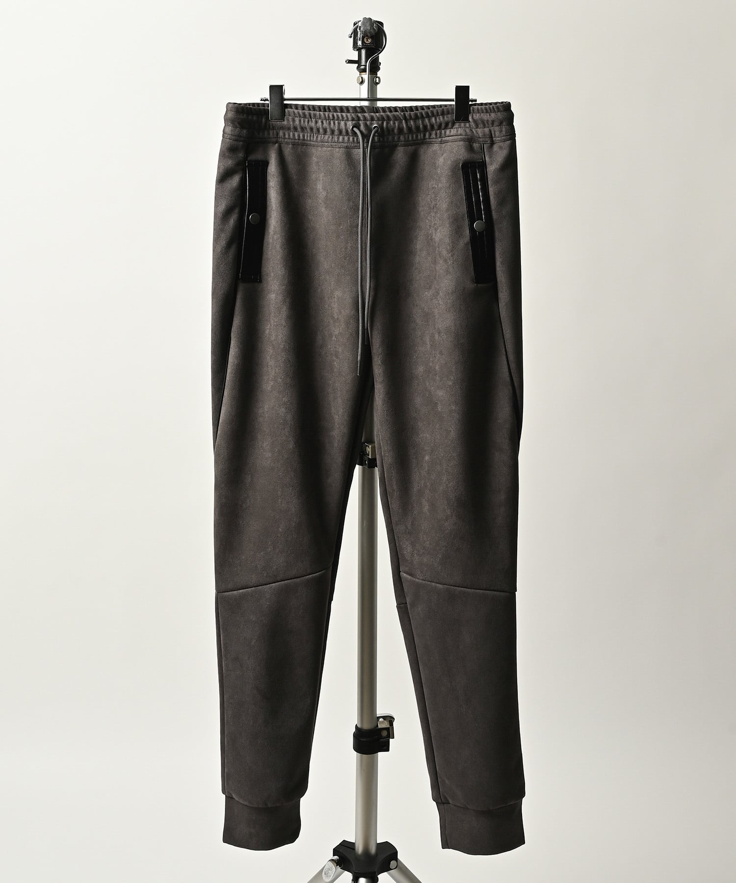 フェイクスウェードのポンチ素材を使用した肌触りの良いジョガーパンツです。