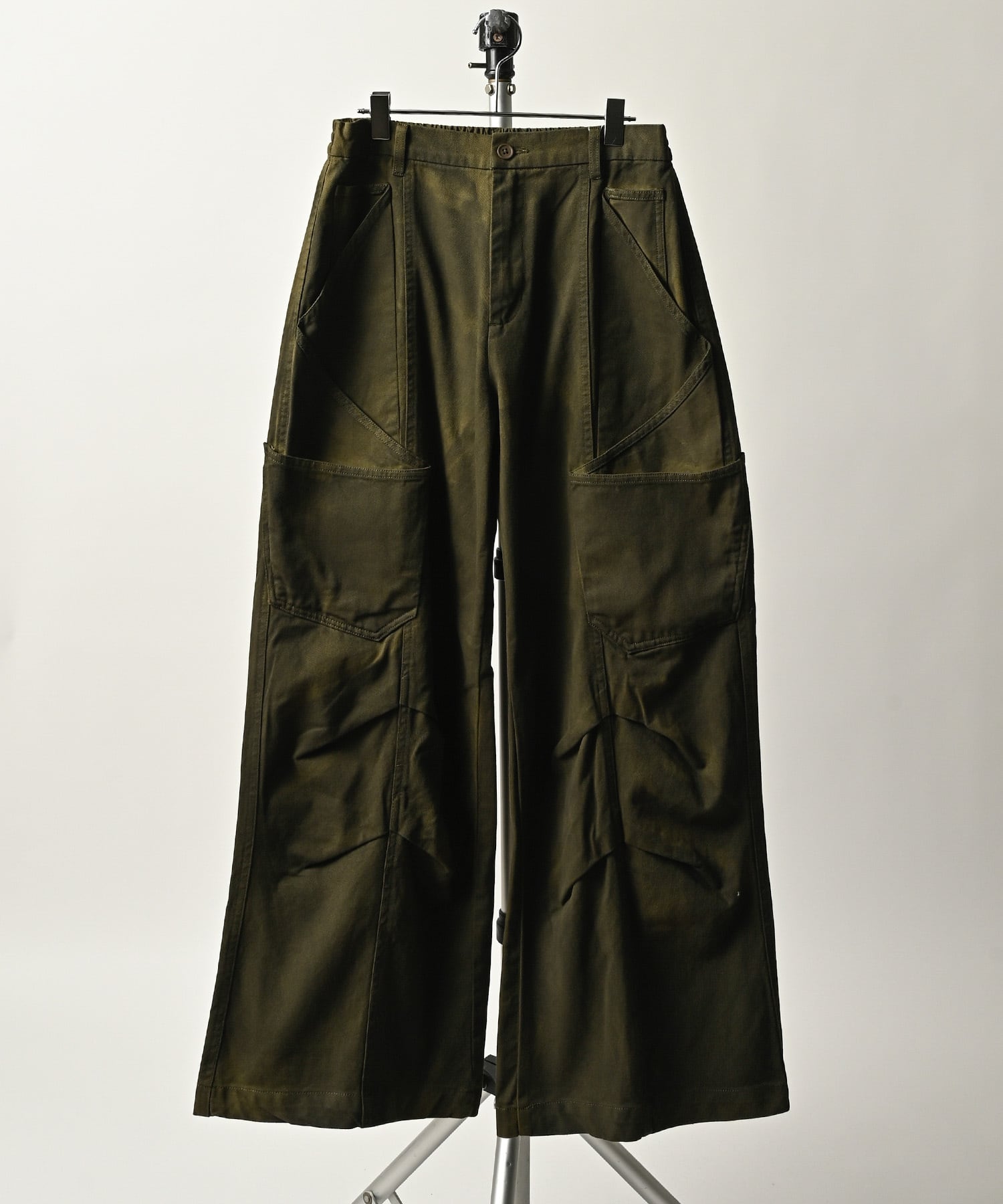 特徴的なデザインポケットと、裾にかけて入ったタックが特徴。