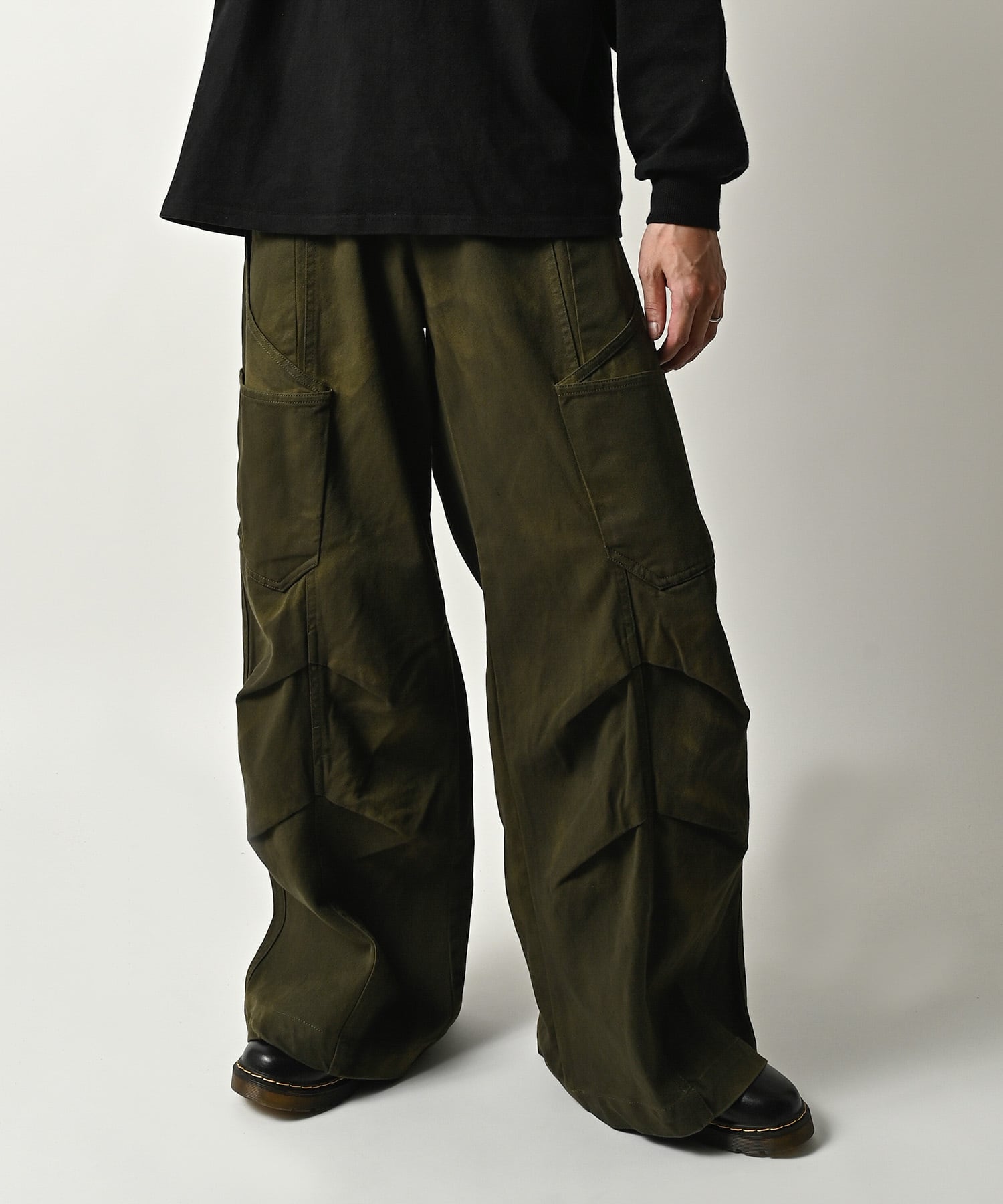 many men many mind Vintage-processed cotton twill pleated pants (KHA) M2528050