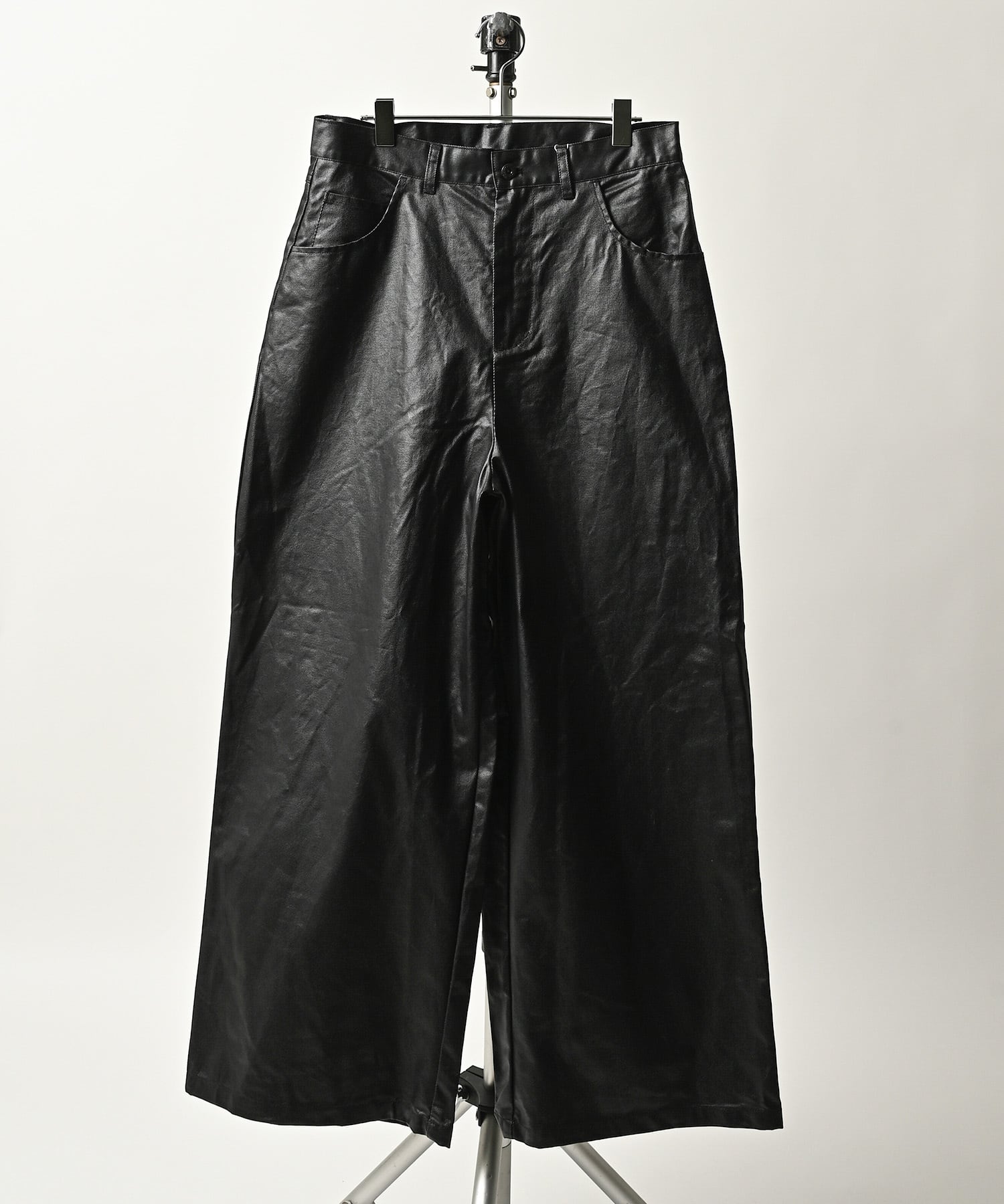 many men many mind Denim flocked, PU processed denim pants (BLK/PU) M2528022