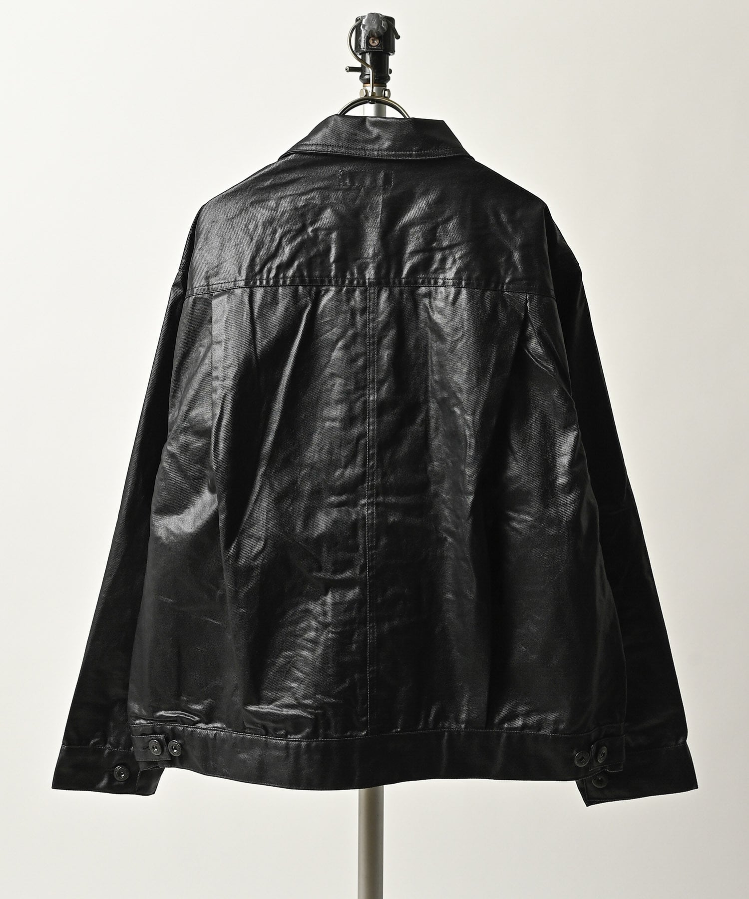 many men many mind Denim flocked, PU-coated trucker jacket (BLK/PU) M2523020