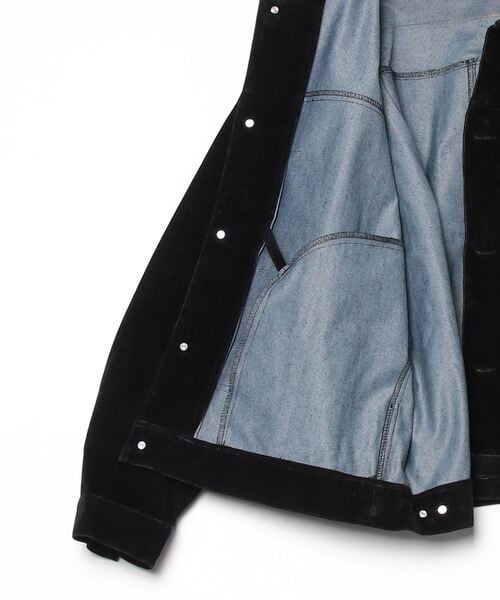 デニム生地にフロッキー加工やPUコーティングを施した生地を使用。レーヨン素材のフロッキー加工は光沢もありスエードのような肌当たりがあります。ポリウレタンコーティング加工はレザーのような質感になります。