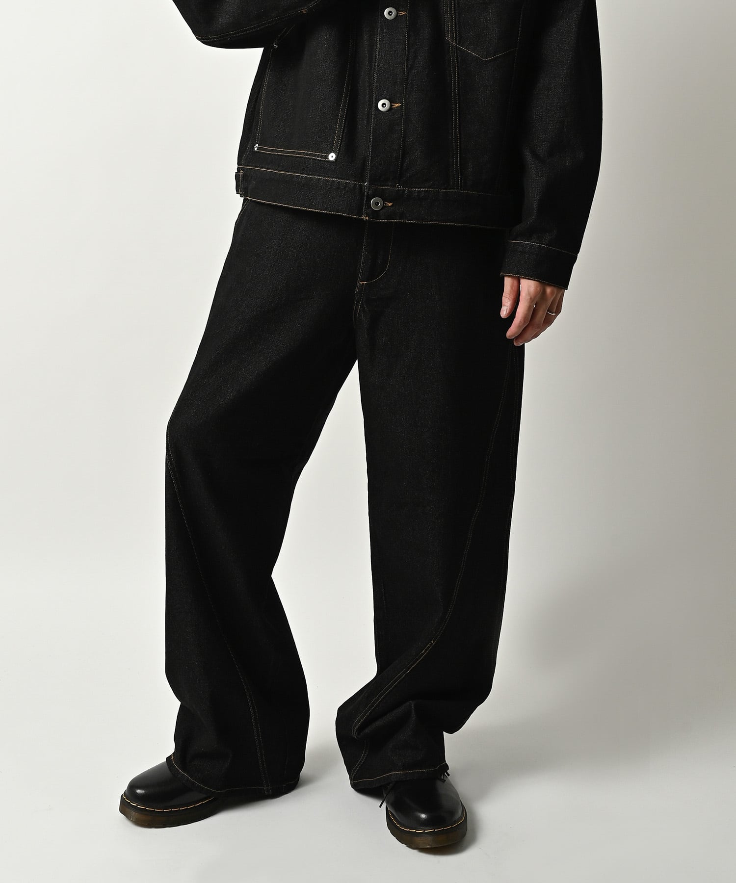 大胆なパネル切り替えとコントラストステッチがアクセント。スタイルアップを狙えるワイドフレア。