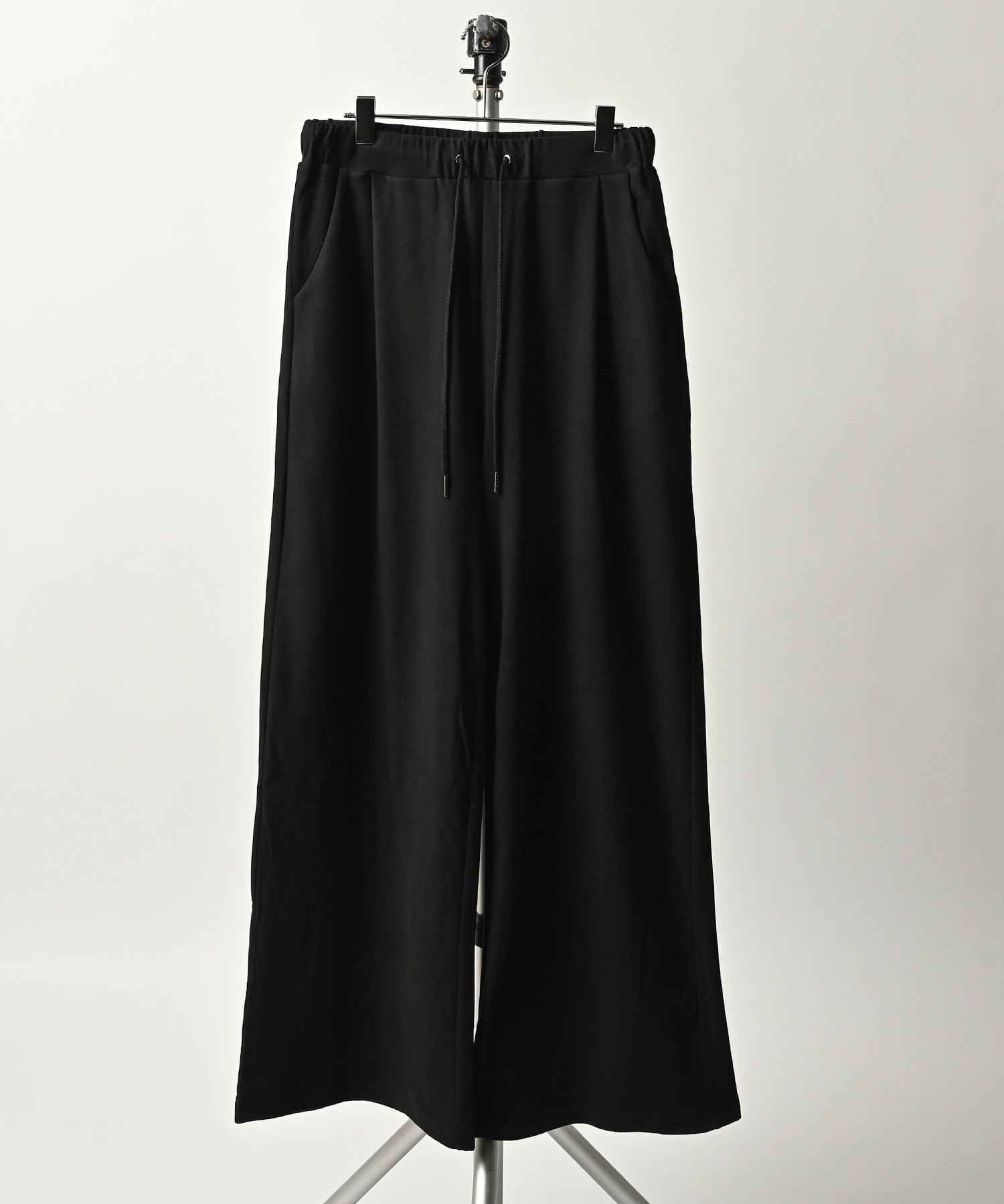 柔らかなウールライクな素材感と、リラックスしたワイドシルエットのパンツ。