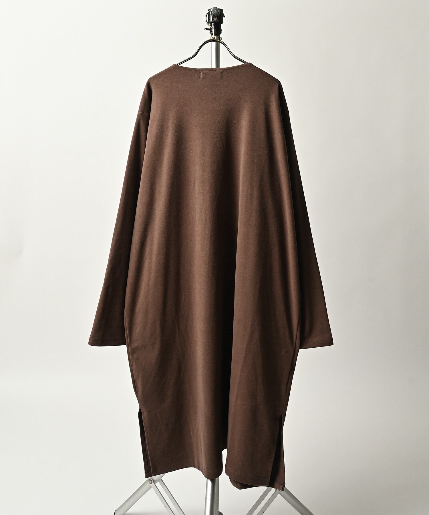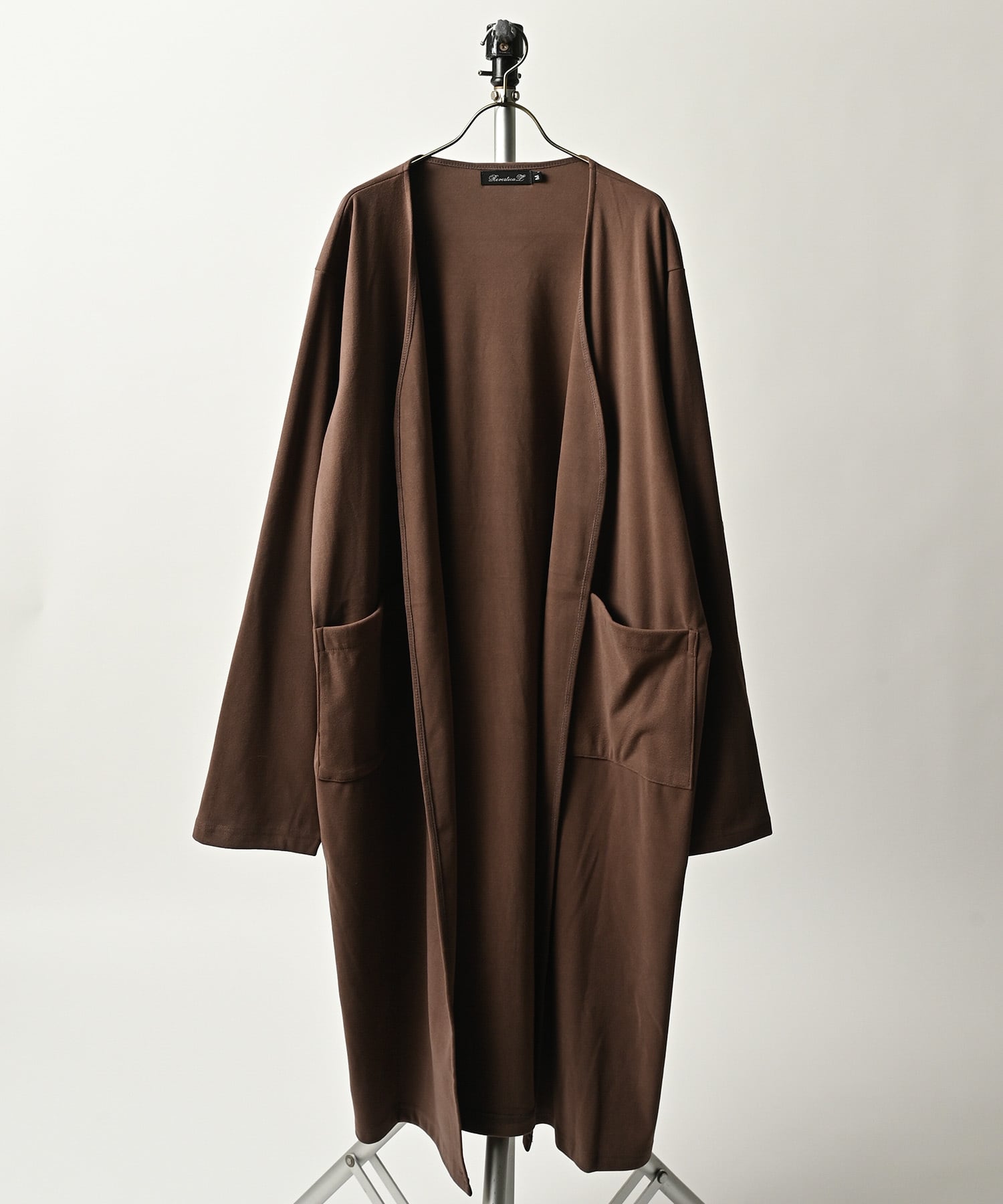 柔らかなウールライクな素材感と、リラックスしたシルエットが特徴のロングカーディガン。ボタンレスデザインがスタイリッシュさを引き立て、パッチポケットが実用性も兼ね備えています。