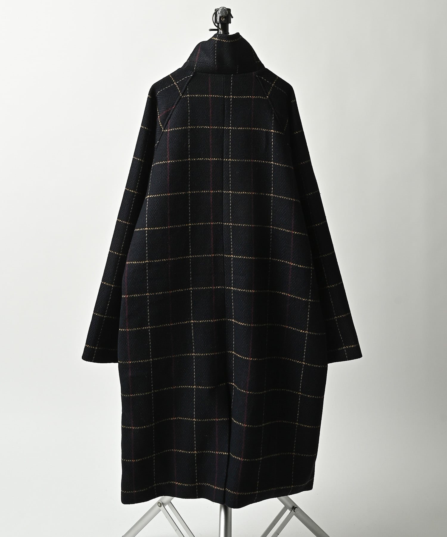 クラシカルなチェック柄をあしらった、上品なツイードステンカラーコート。