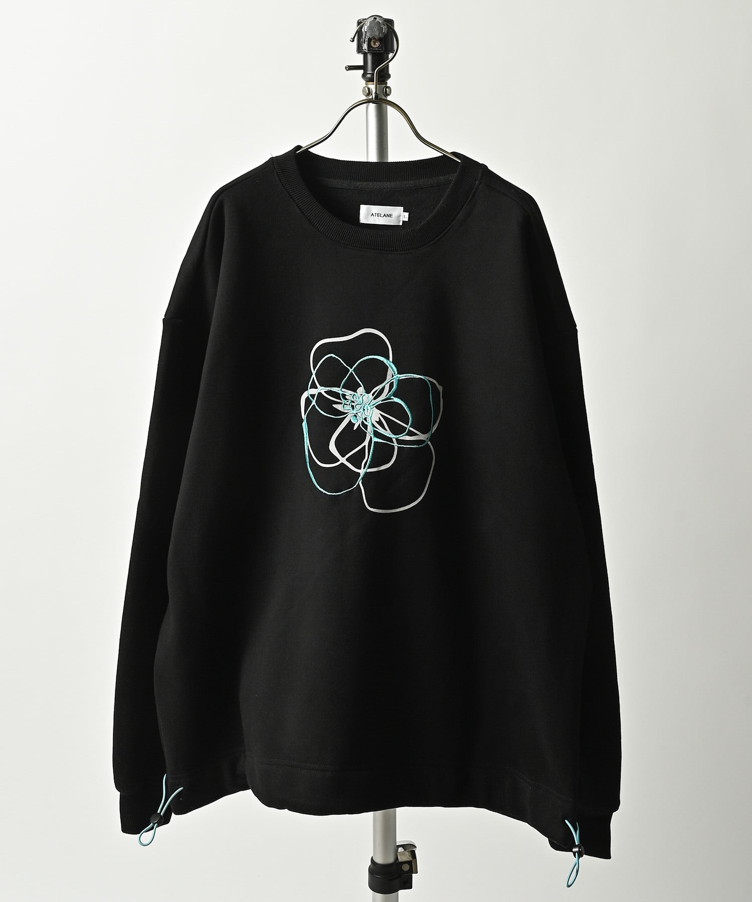 ATELANE Fleece-lined flower embroidered sweatshirt (BLK) 25A-24092