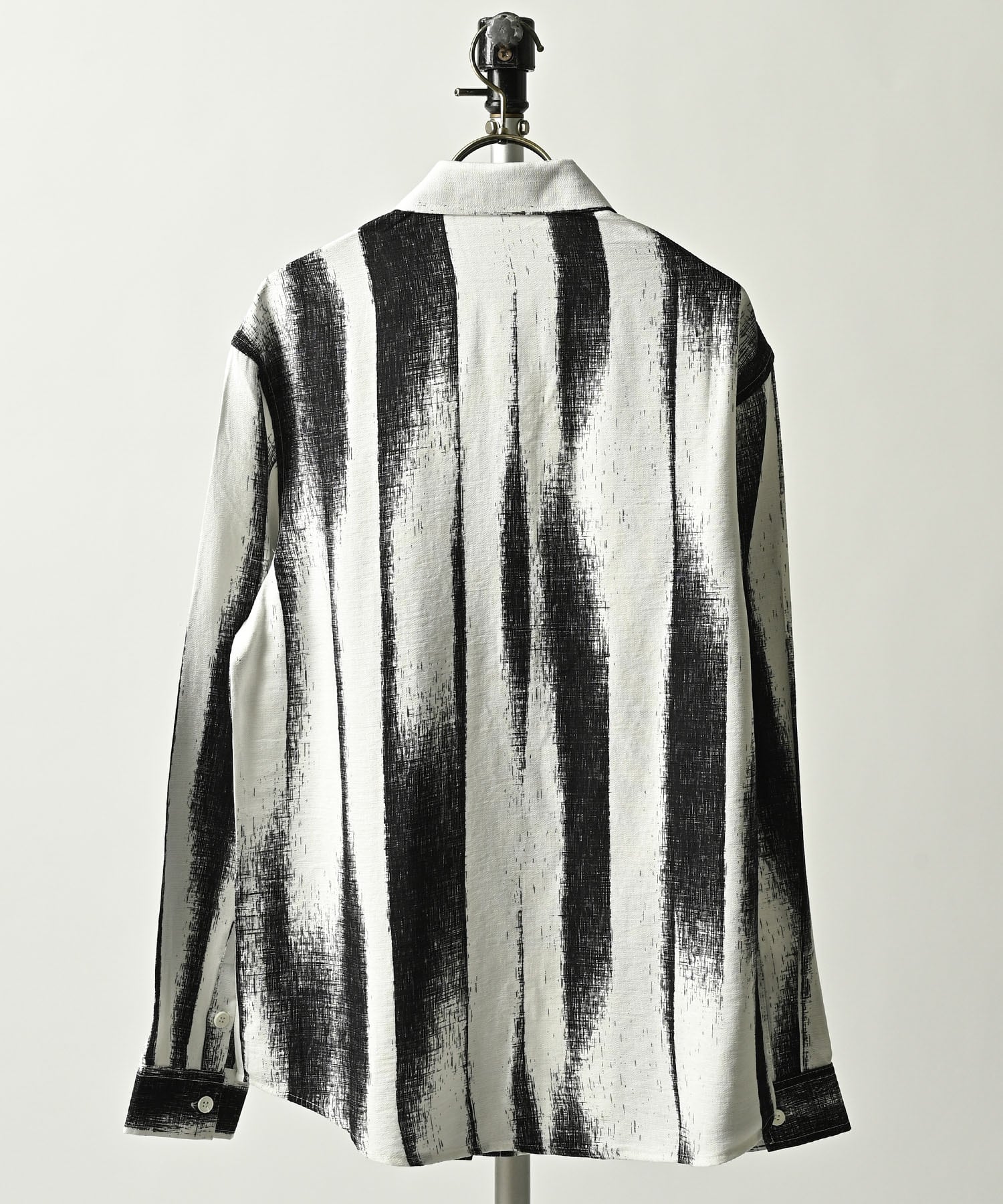 ストライププリントが特徴の長袖シャツ。上品なデザインでありながら、カジュアルにも合わせやすい一枚です。87%のレーヨンと13%のナイロンを使用しており、柔らかな肌触りと軽快な着心地を提供します。総柄プリントは、コーディネートのアクセントとして存在感を発揮し、さまざまなシーンで活躍します。レギュラーカラー。