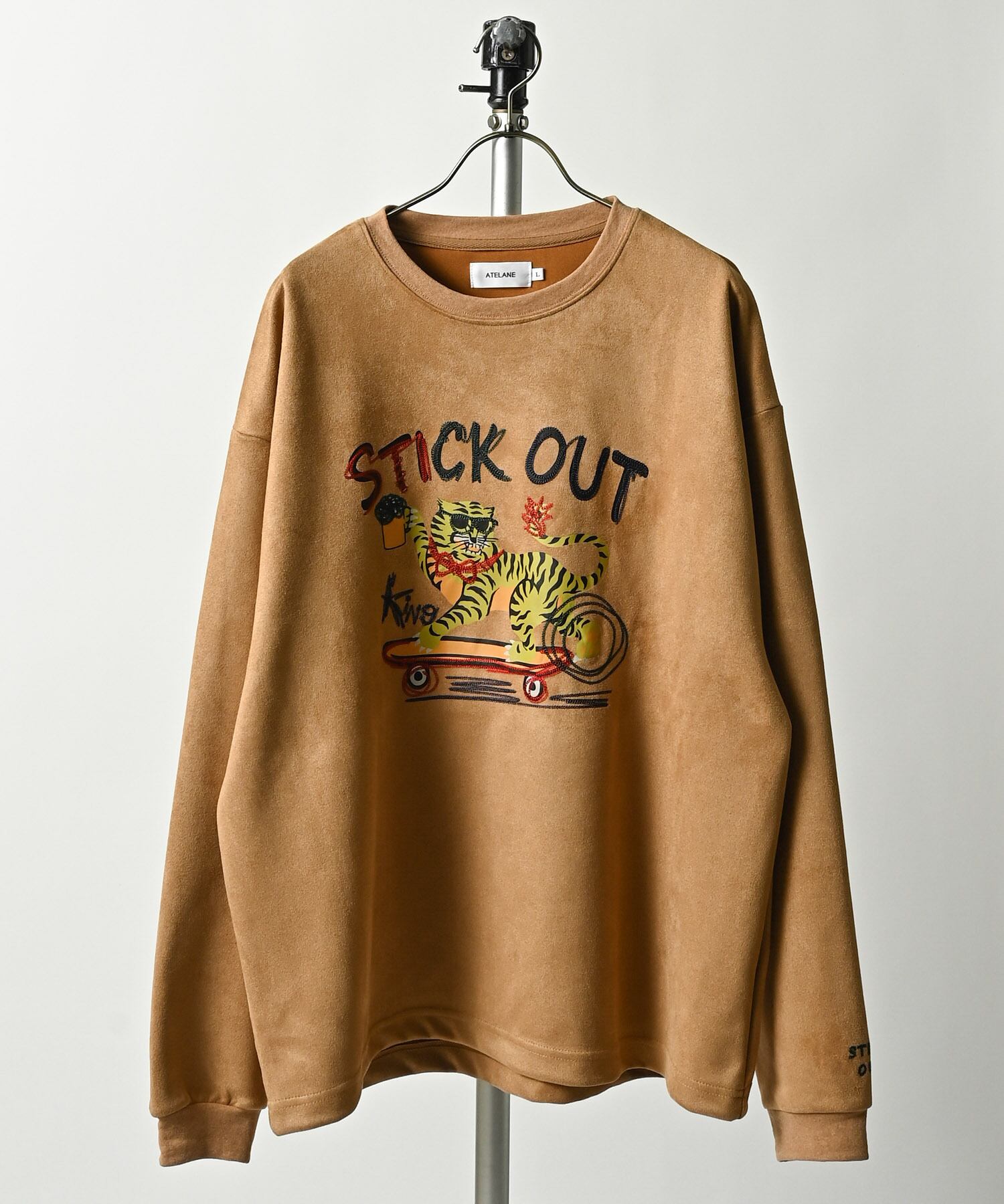 ATELANE Faux suede tiger embroidered crew neck (BEG) 26A-14011