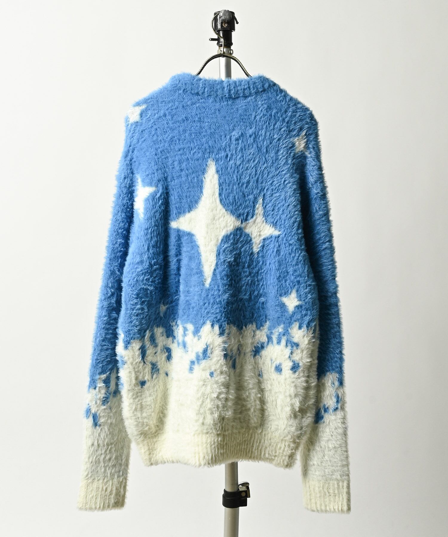VOLUNTAS Feather yarn star pattern knit crew neck (BLU) 325004