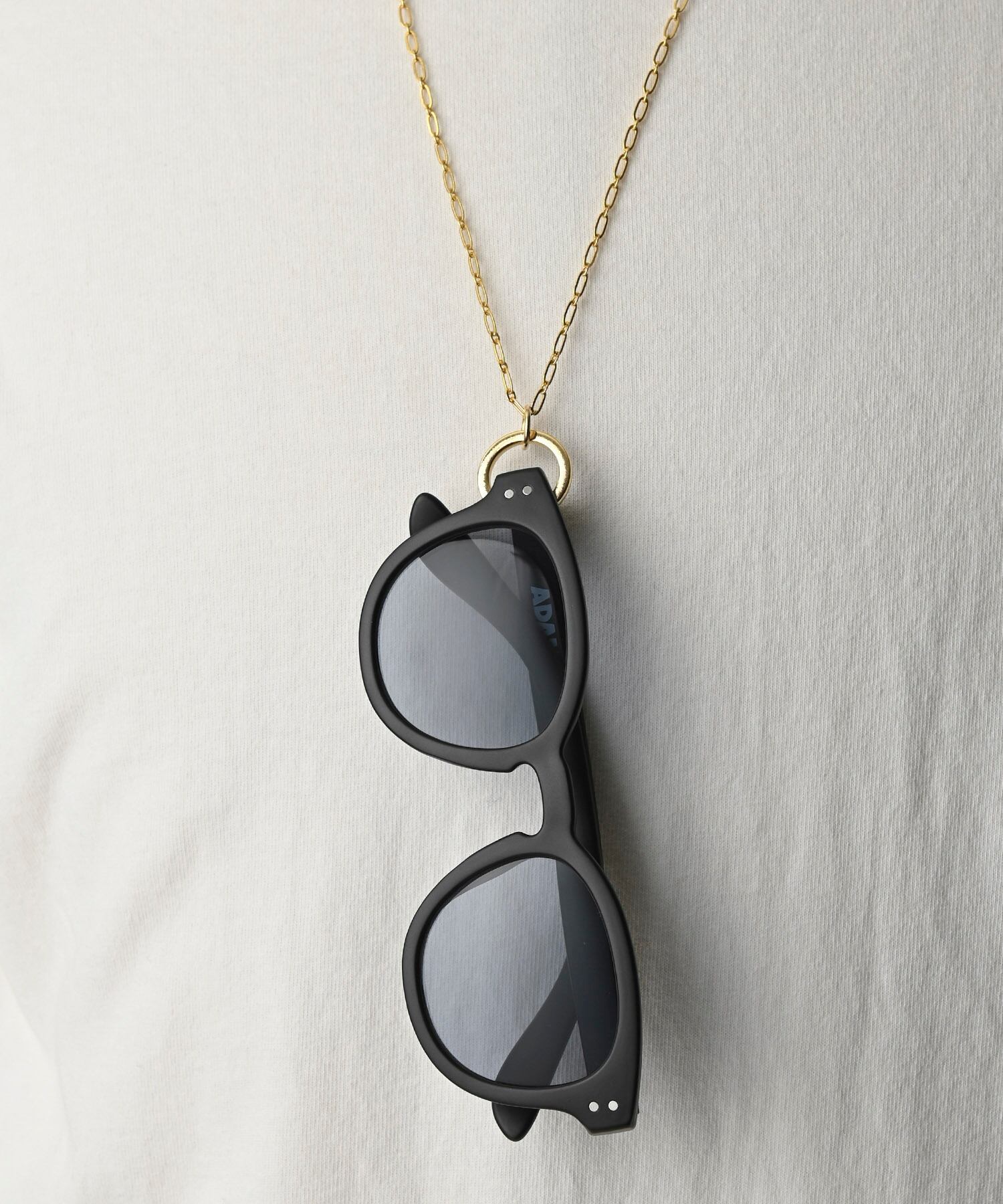 シリコンゴムのループを柄に通してメガネやサングラスを