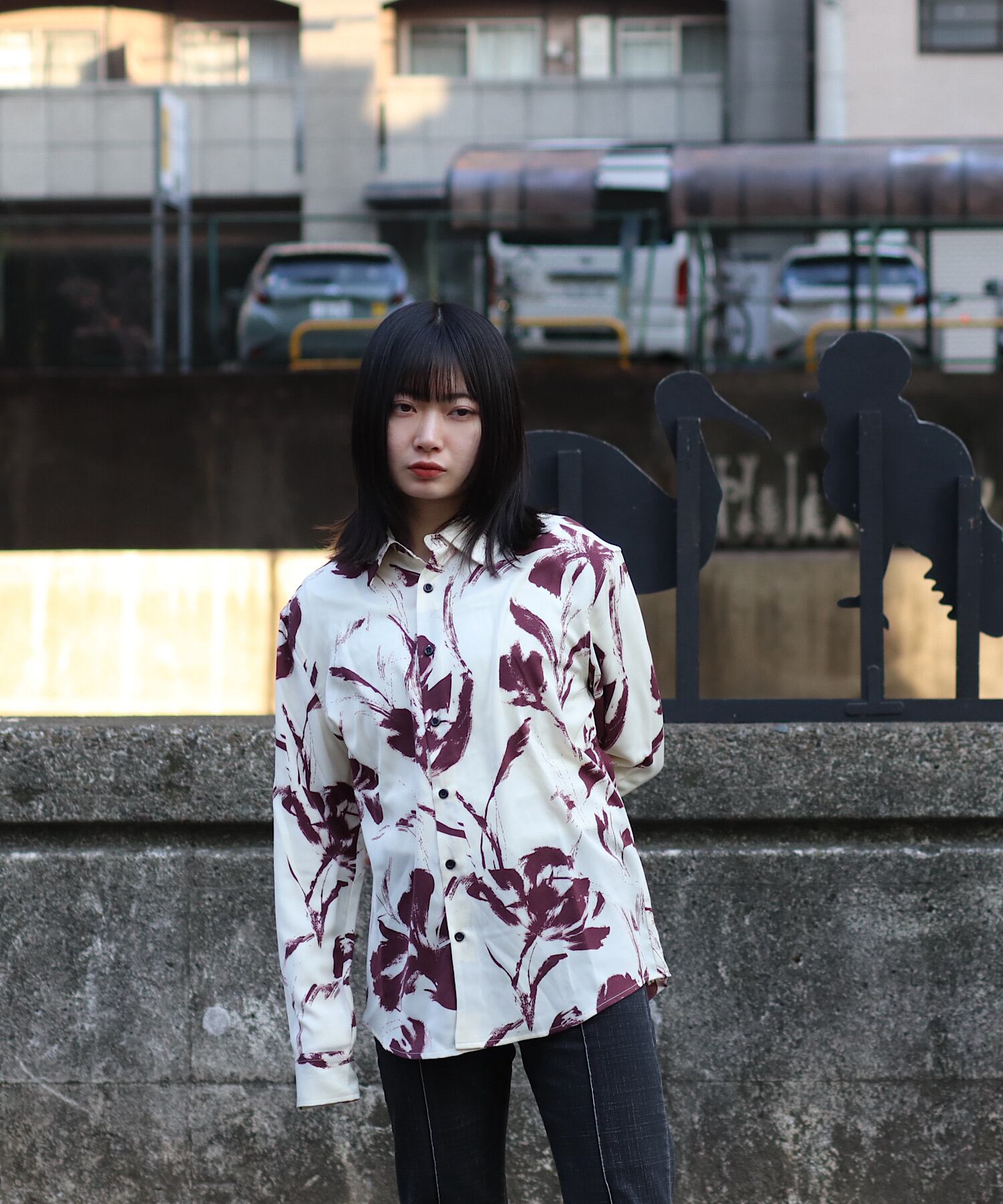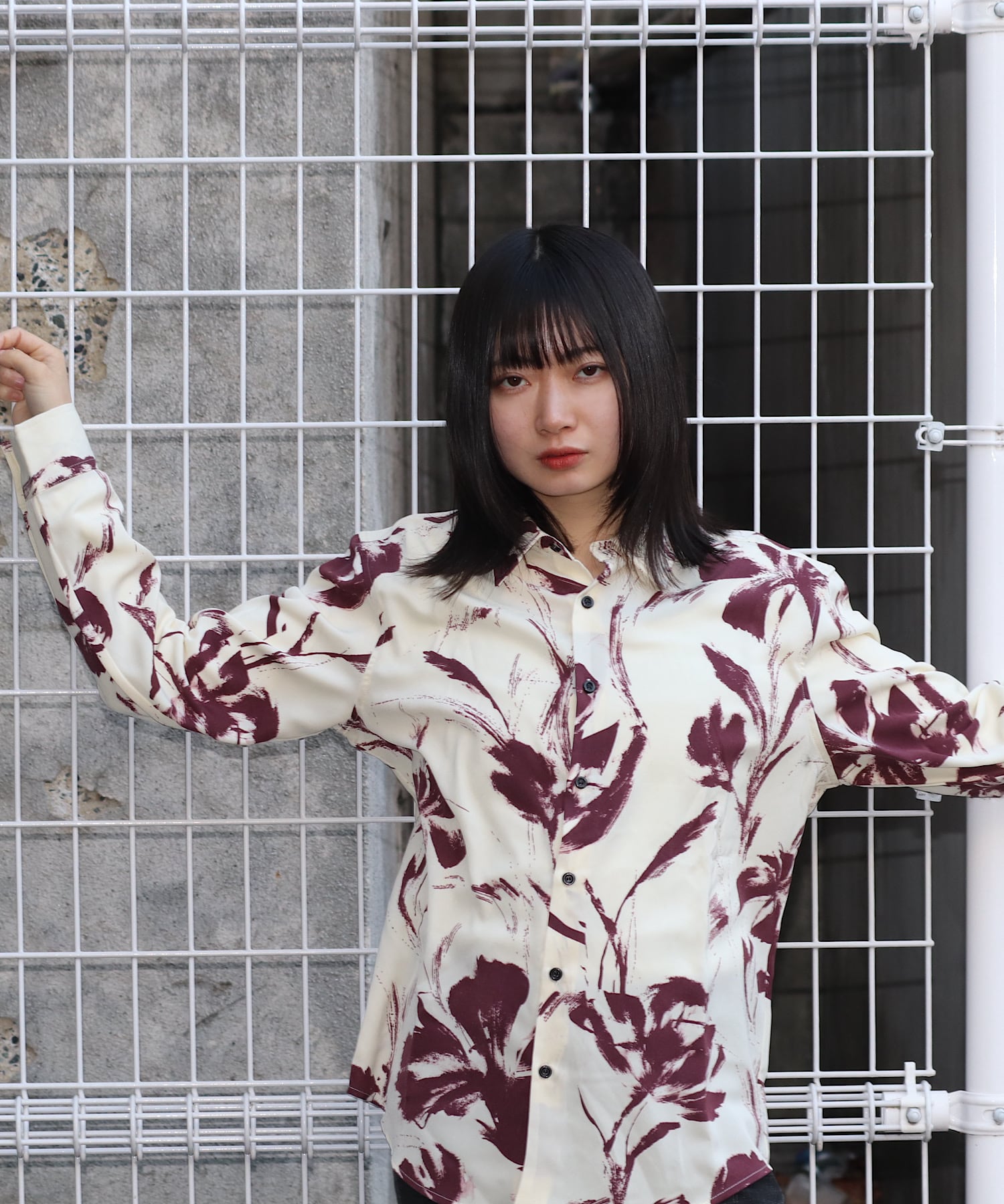 上品なデザインが光る、長袖プリントシャツ。