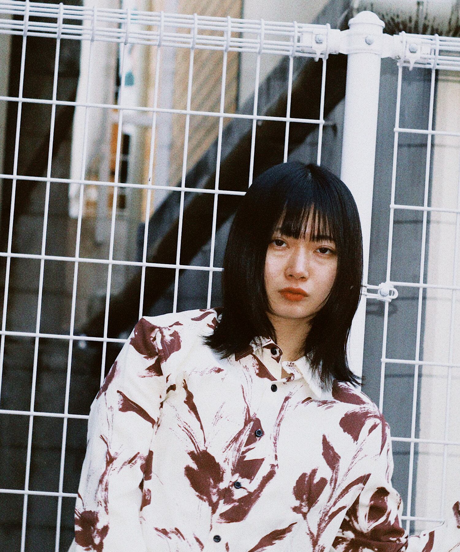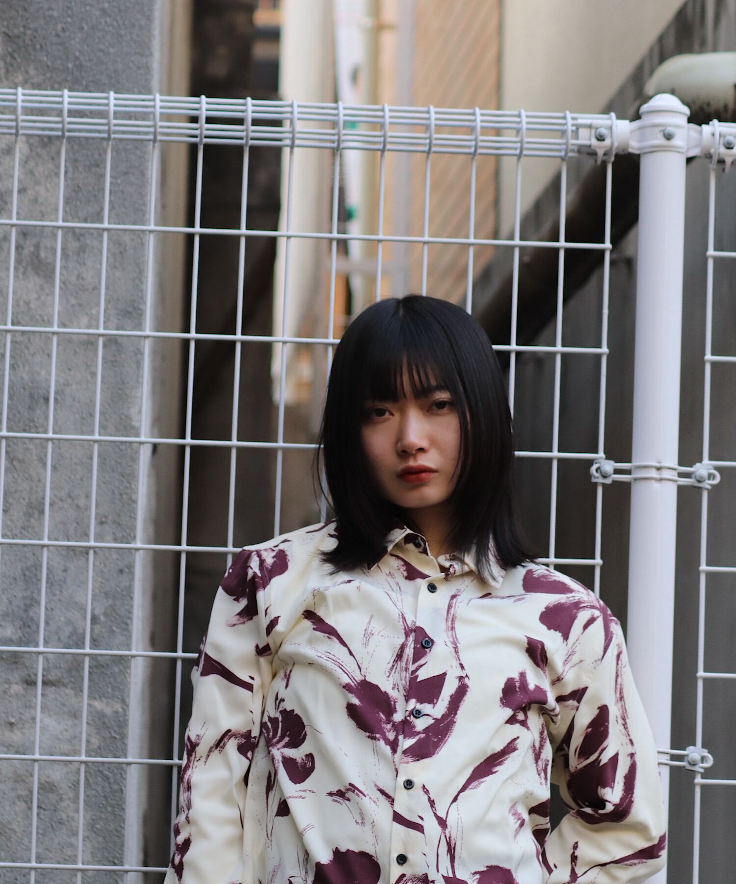 全体に施されたプリントが特徴で、一枚着るだけでスタイリングを引き立てるアイテムです。ポリエステル100%の素材は、軽量で通気性に優れ、快適な着心地を実現しています。