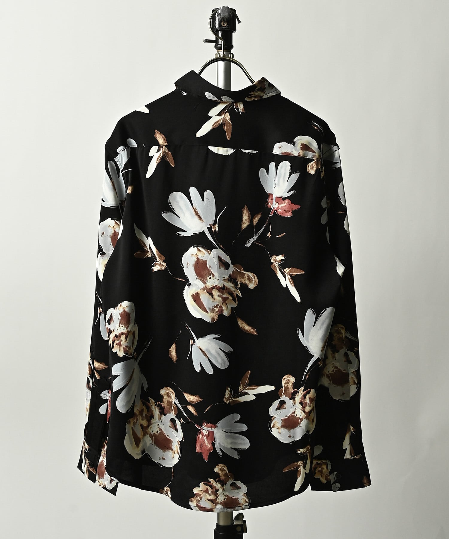全体に施されたプリントが特徴で、一枚着るだけでスタイリングを引き立てるアイテムです。ポリエステル100%の素材は、軽量で通気性に優れ、快適な着心地を実現しています。