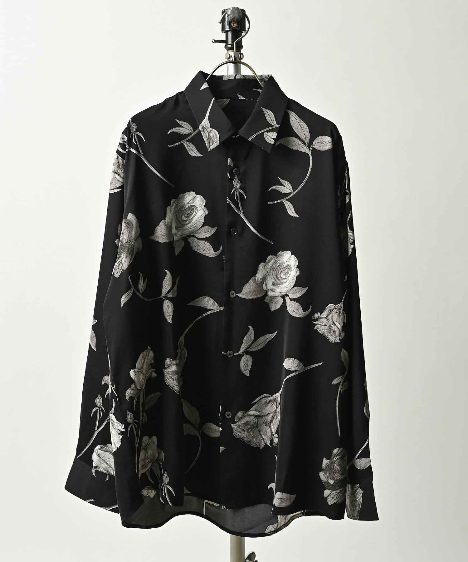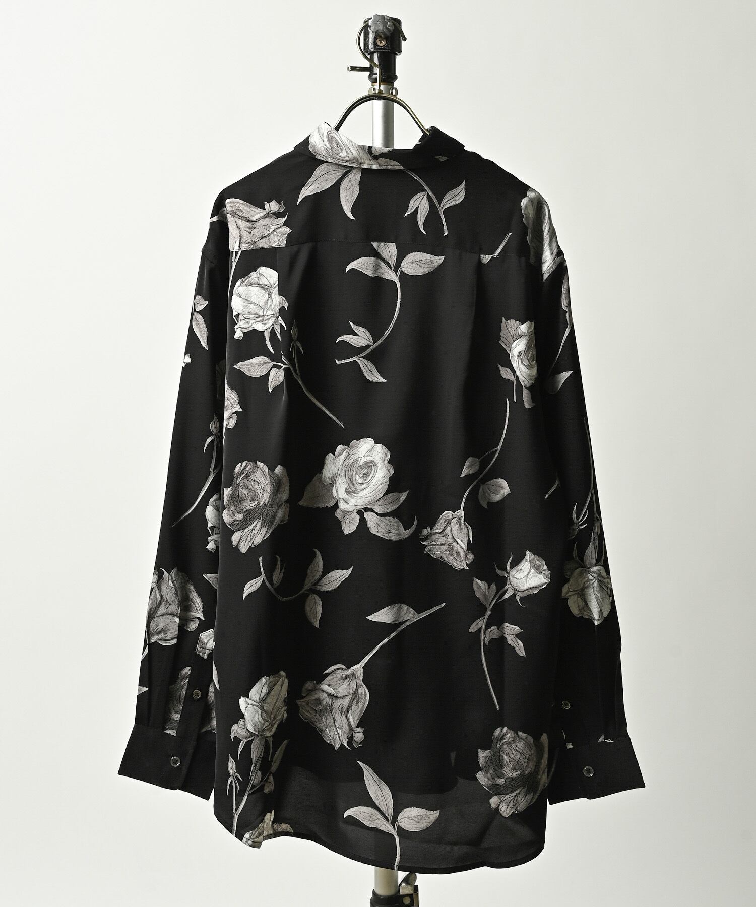 MMMM Rose print regular collar shirt (BLK) 15001M26