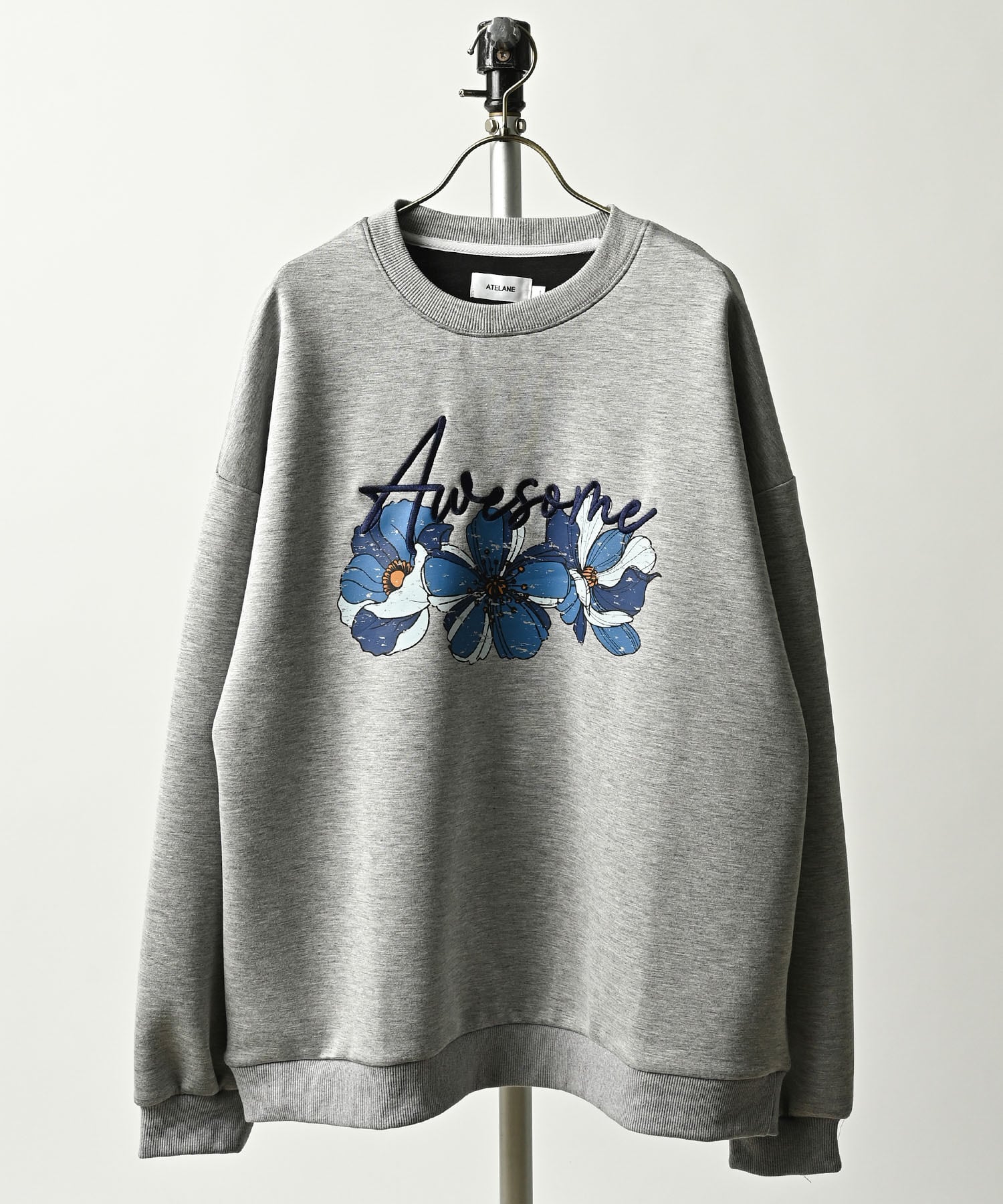 ATELANE Rayon-mix ponte floral print long-sleeved pullover (M/GRY) 26A-14001