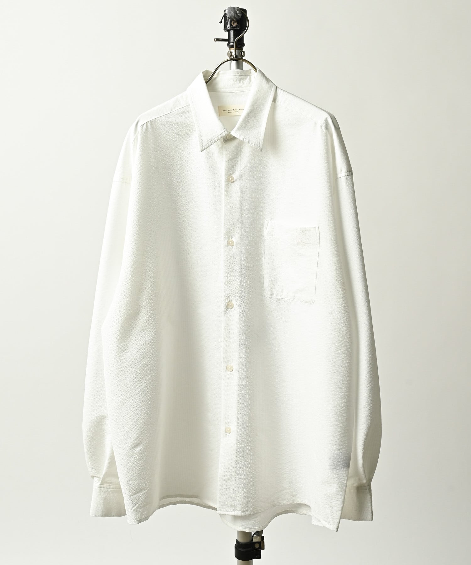 表面に凹凸のあるシアサッカー素材のシャツ。