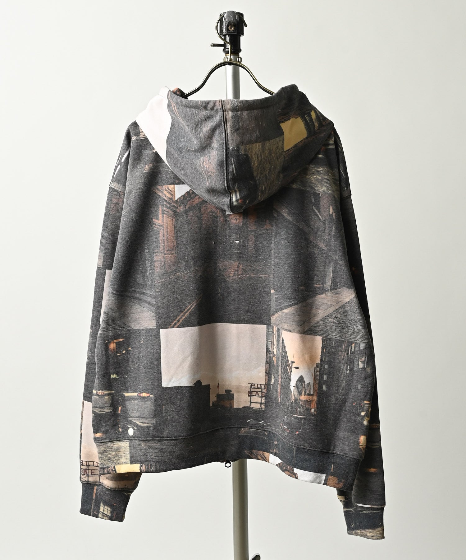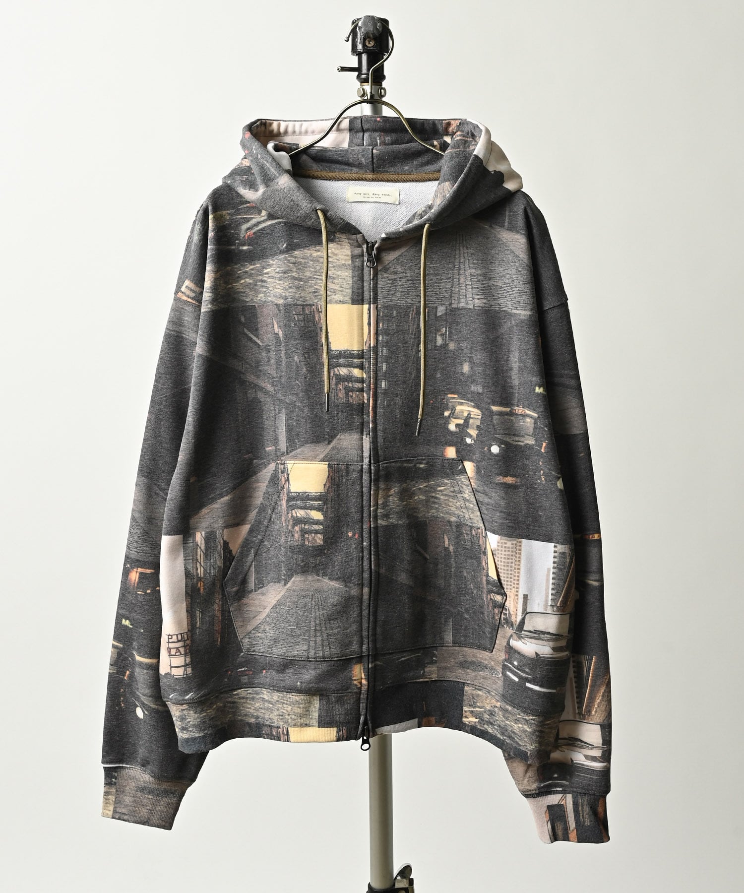 ブランドオリジナルグラフィック総柄ZIPパーカー。