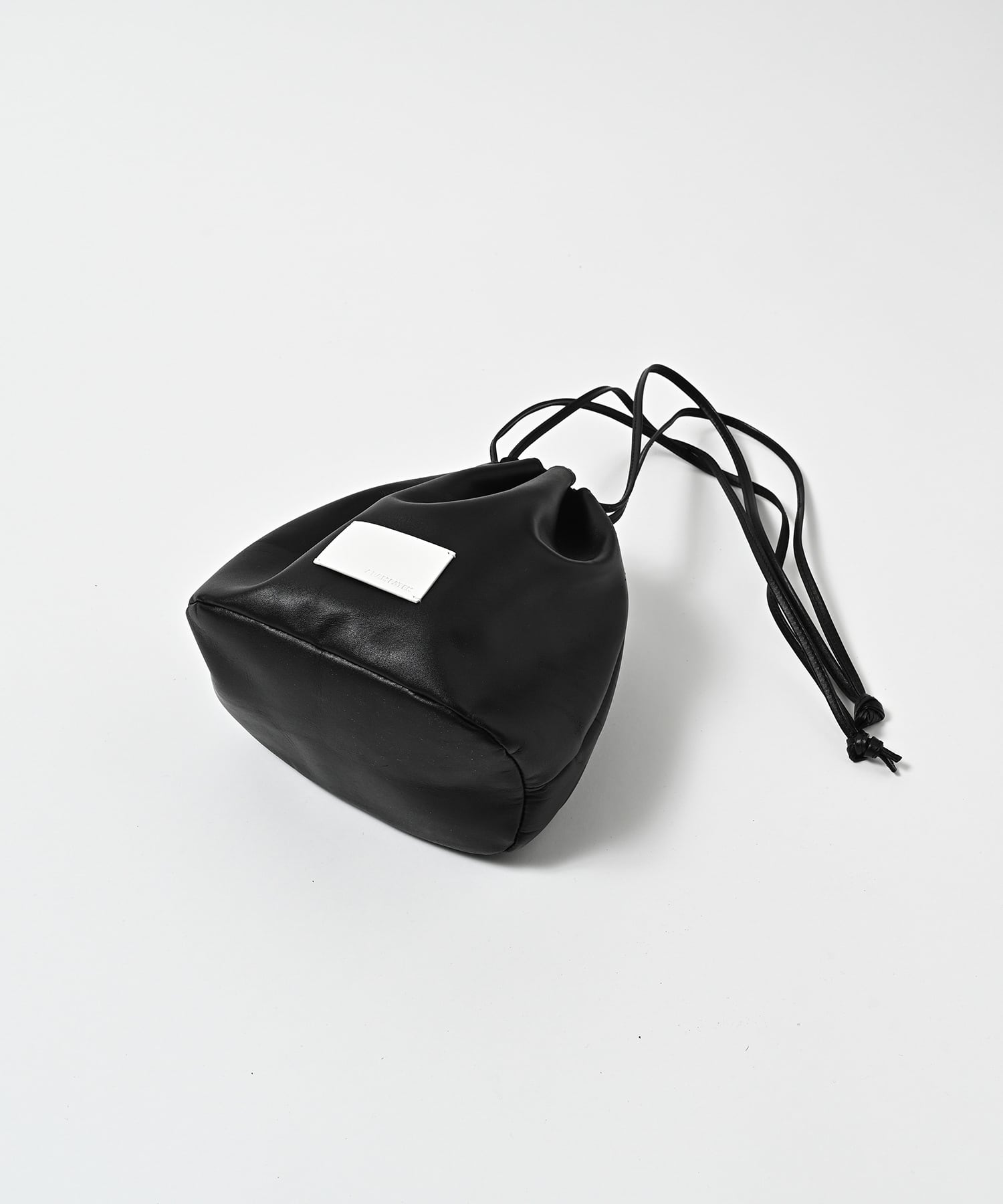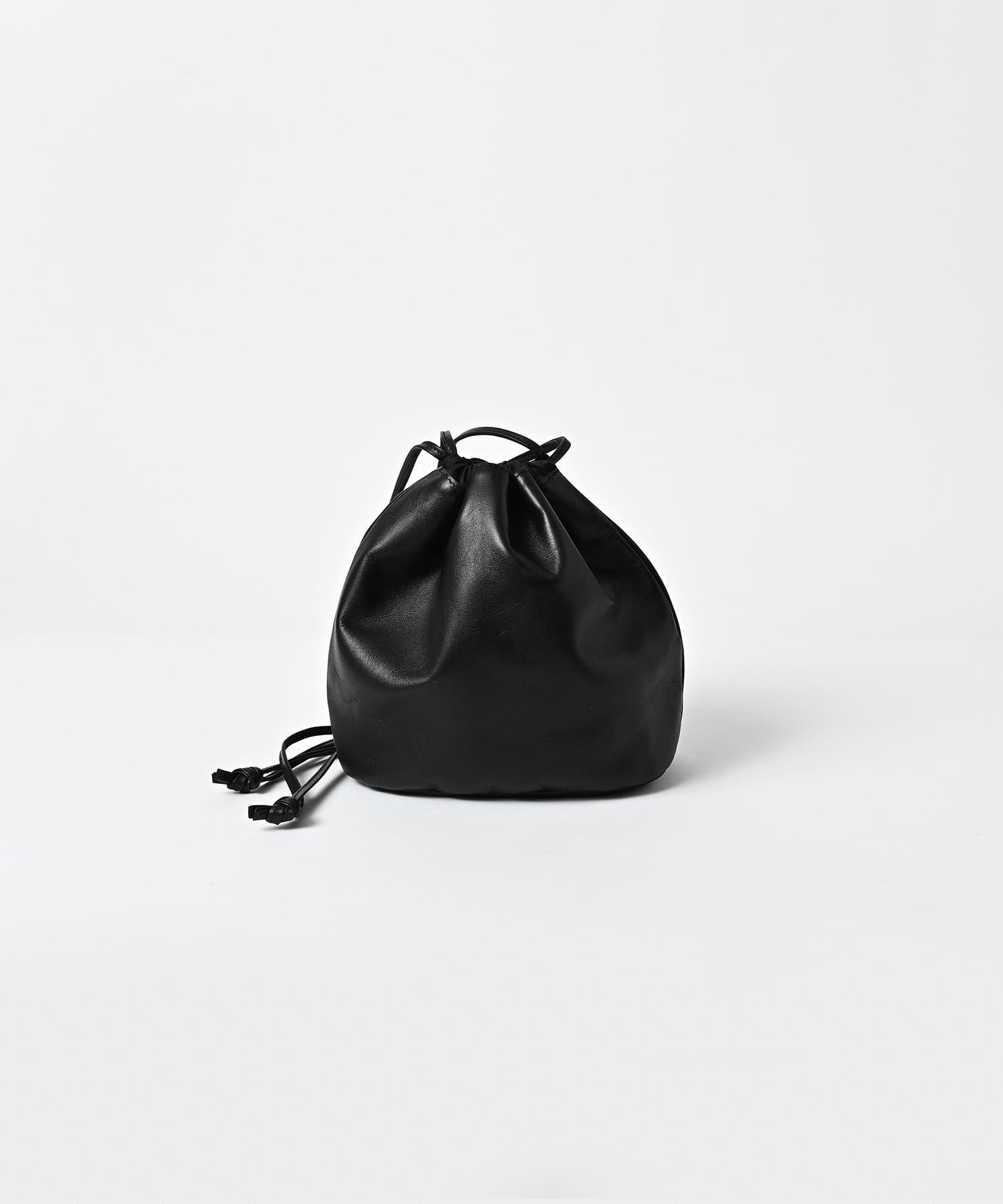 ・撥水加工を施した上質な牛革レザーを使用した、ミニマルなデザインの巾着バッグ。柔らかなレザーの表情と立体的なフォルムが魅力です。