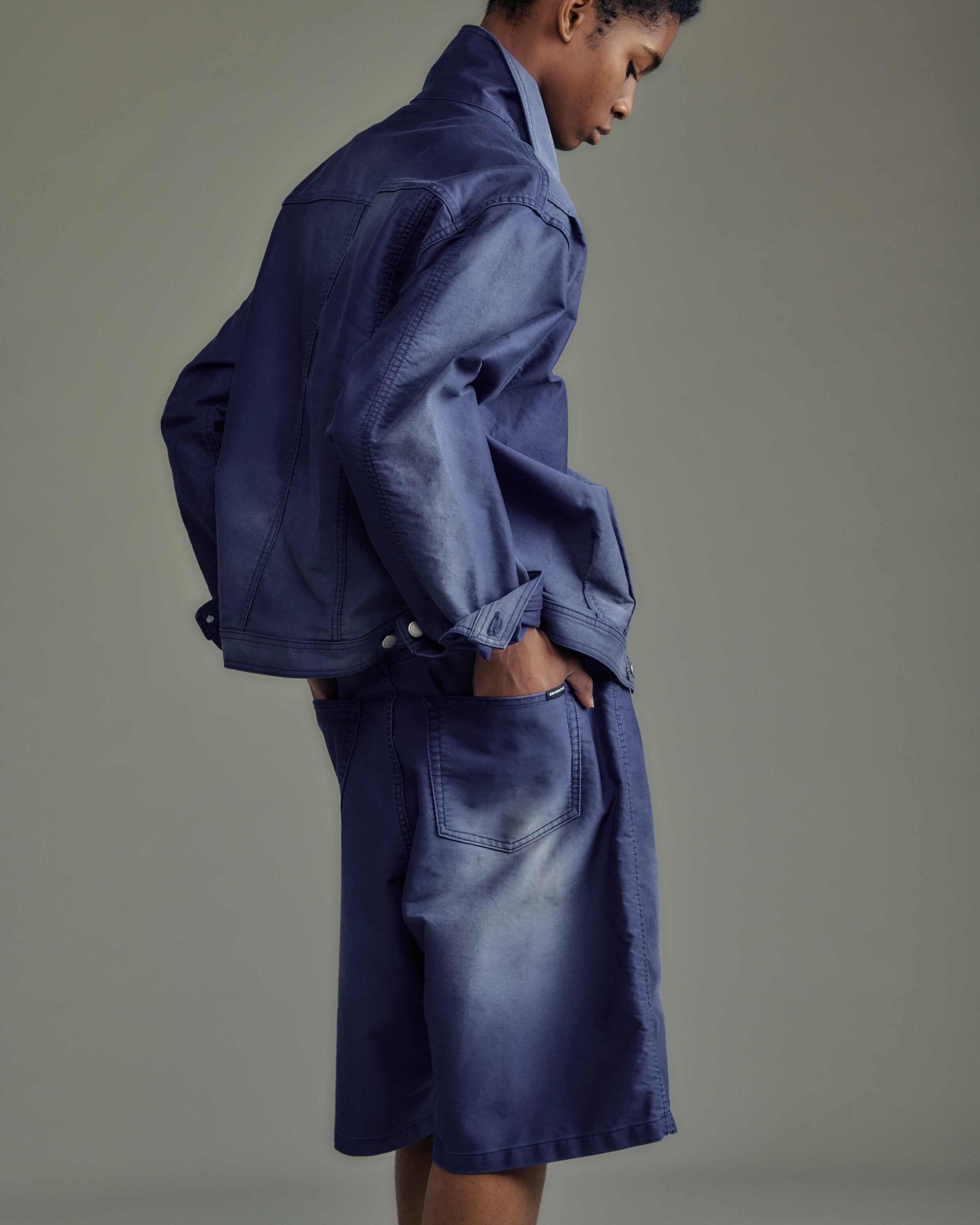 ADAM PATEK blasted light moleskin short length collared jacket (BLU) AP2613013