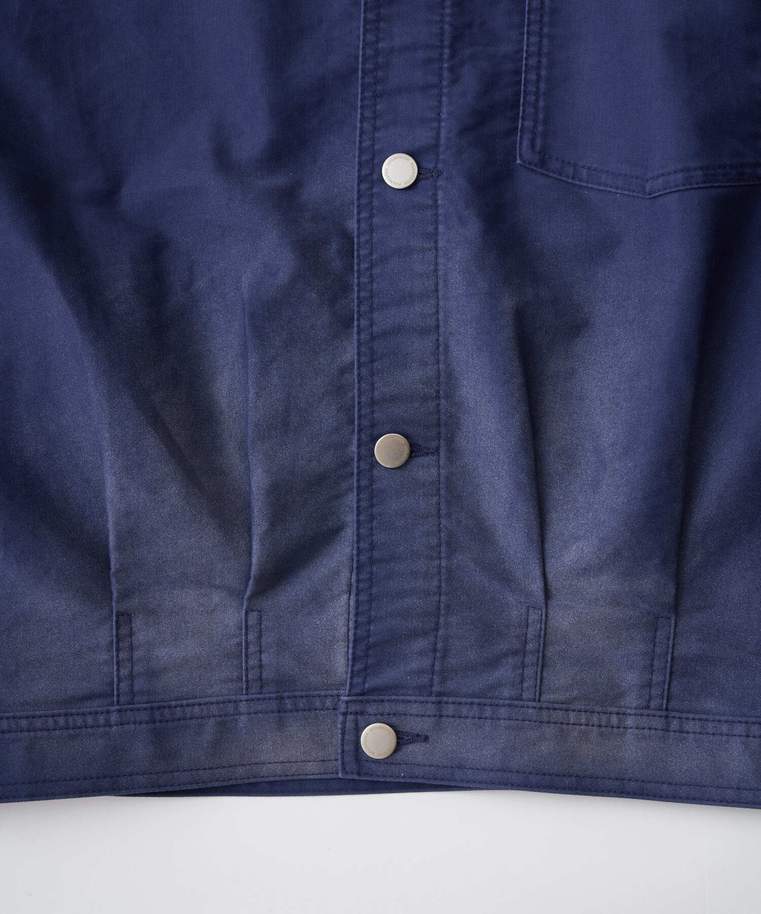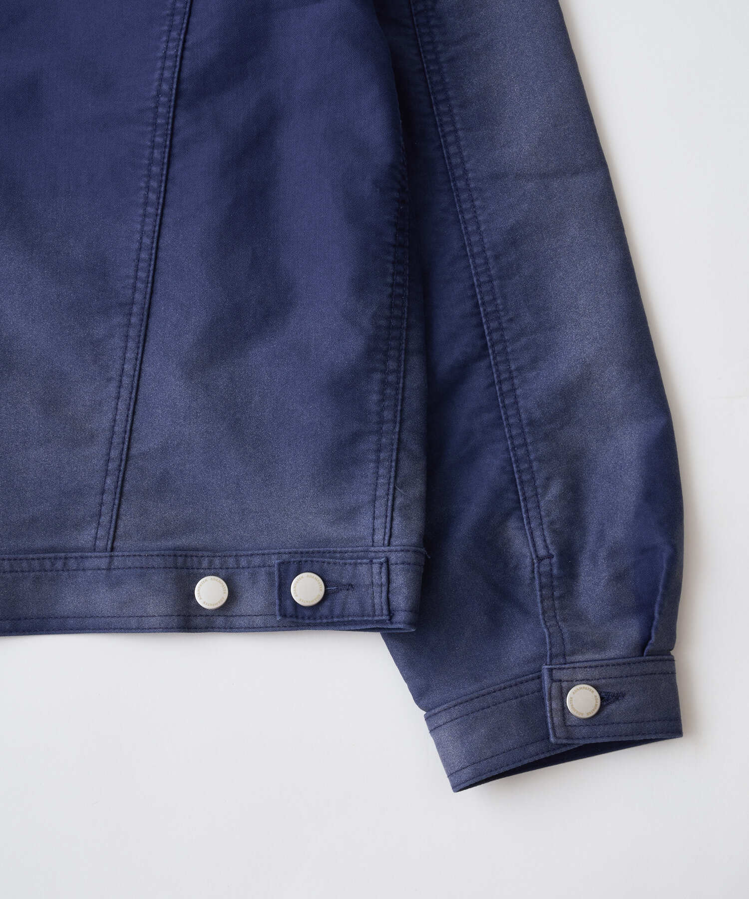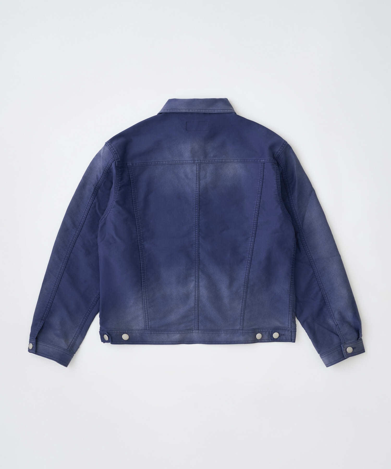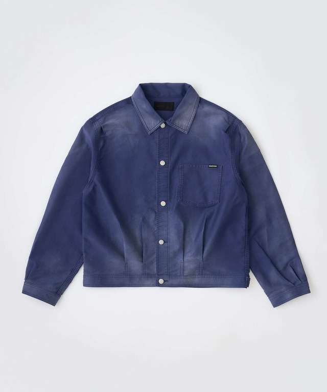 ライトモールスキン生地にハードなブラスト加工を施し、柔らかな素材に荒々しい表情を重ねたショート丈ジャケット。