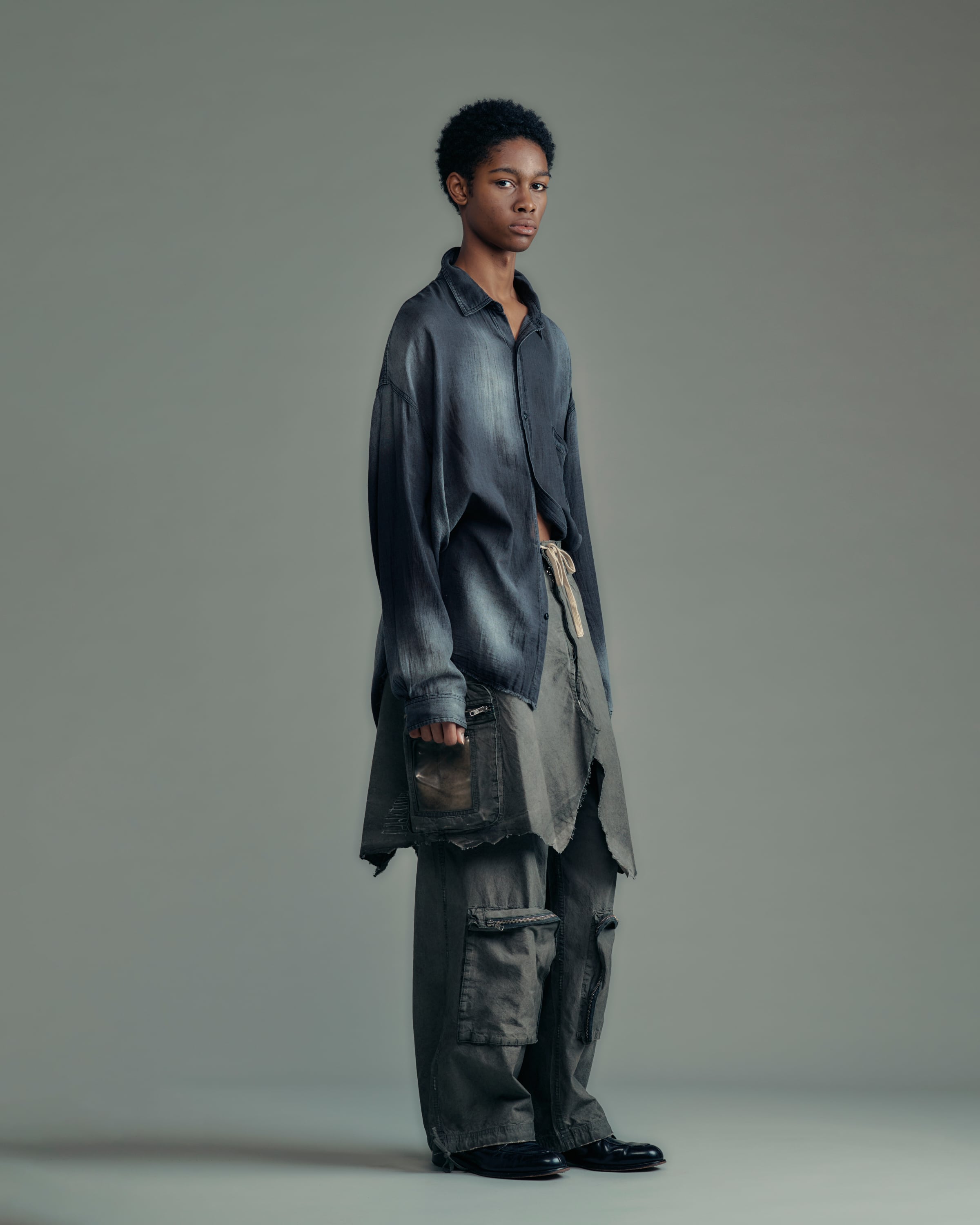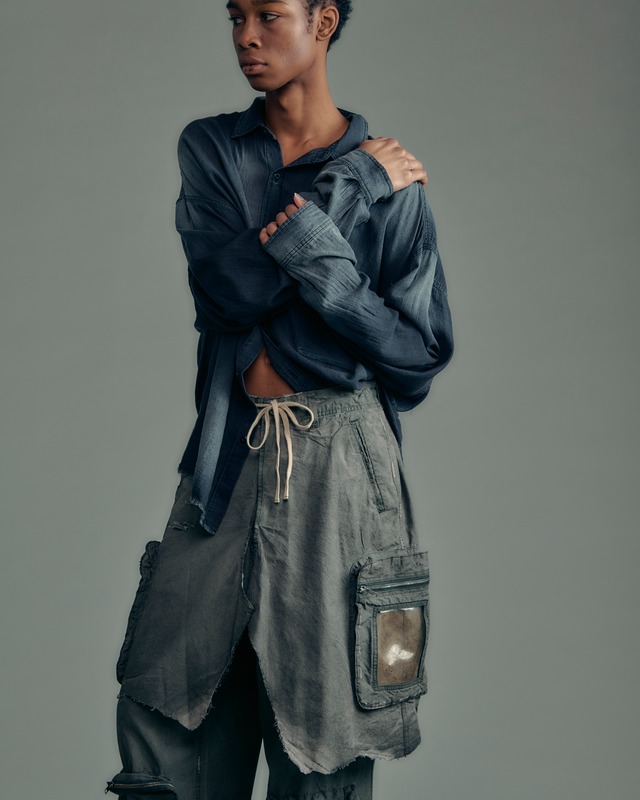 ADAM PATEK aging sheer denim shirt (BLK) AP2615008