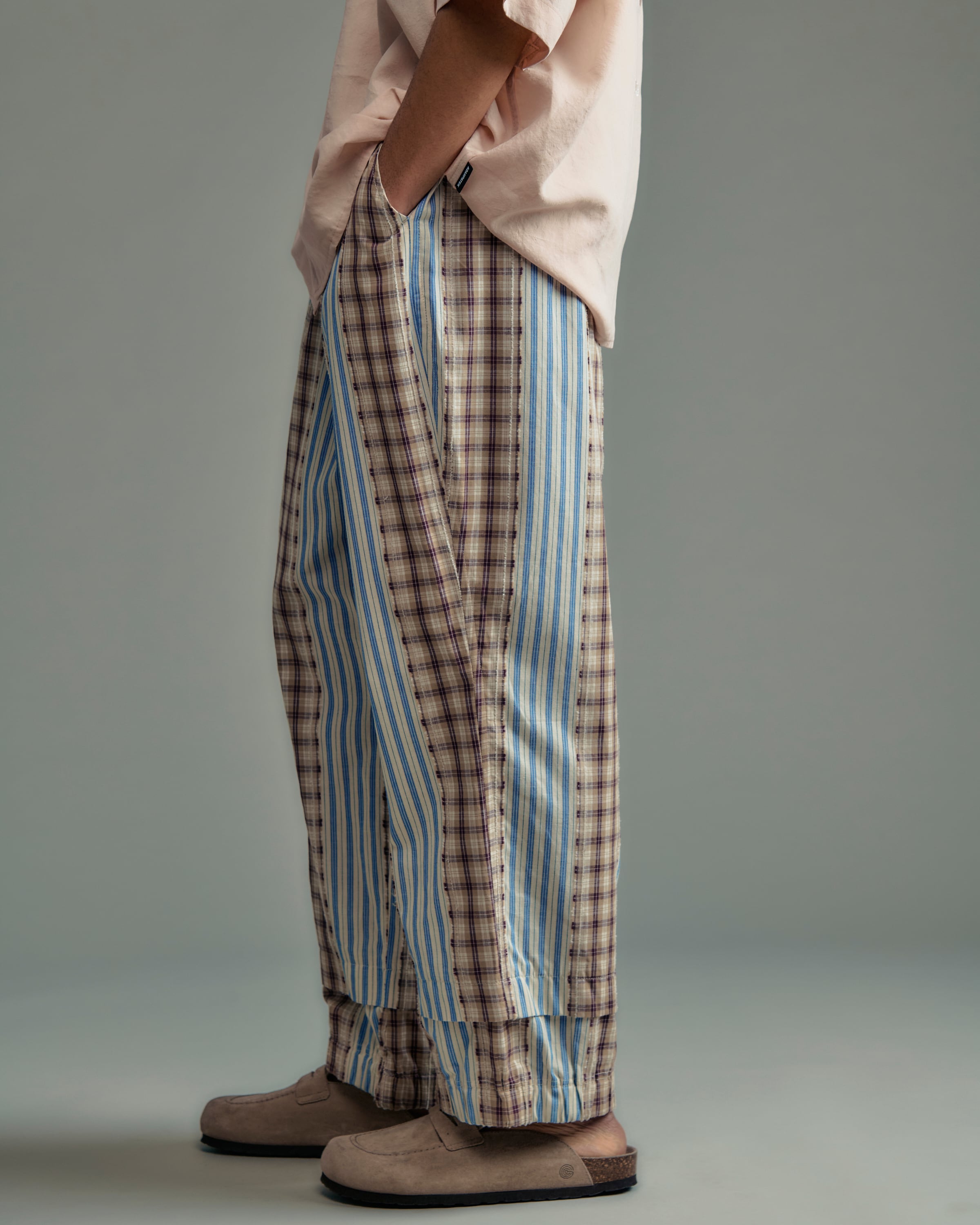 ADAM PATEK jacquard check-stripe easy pants (WHT) AP2618016