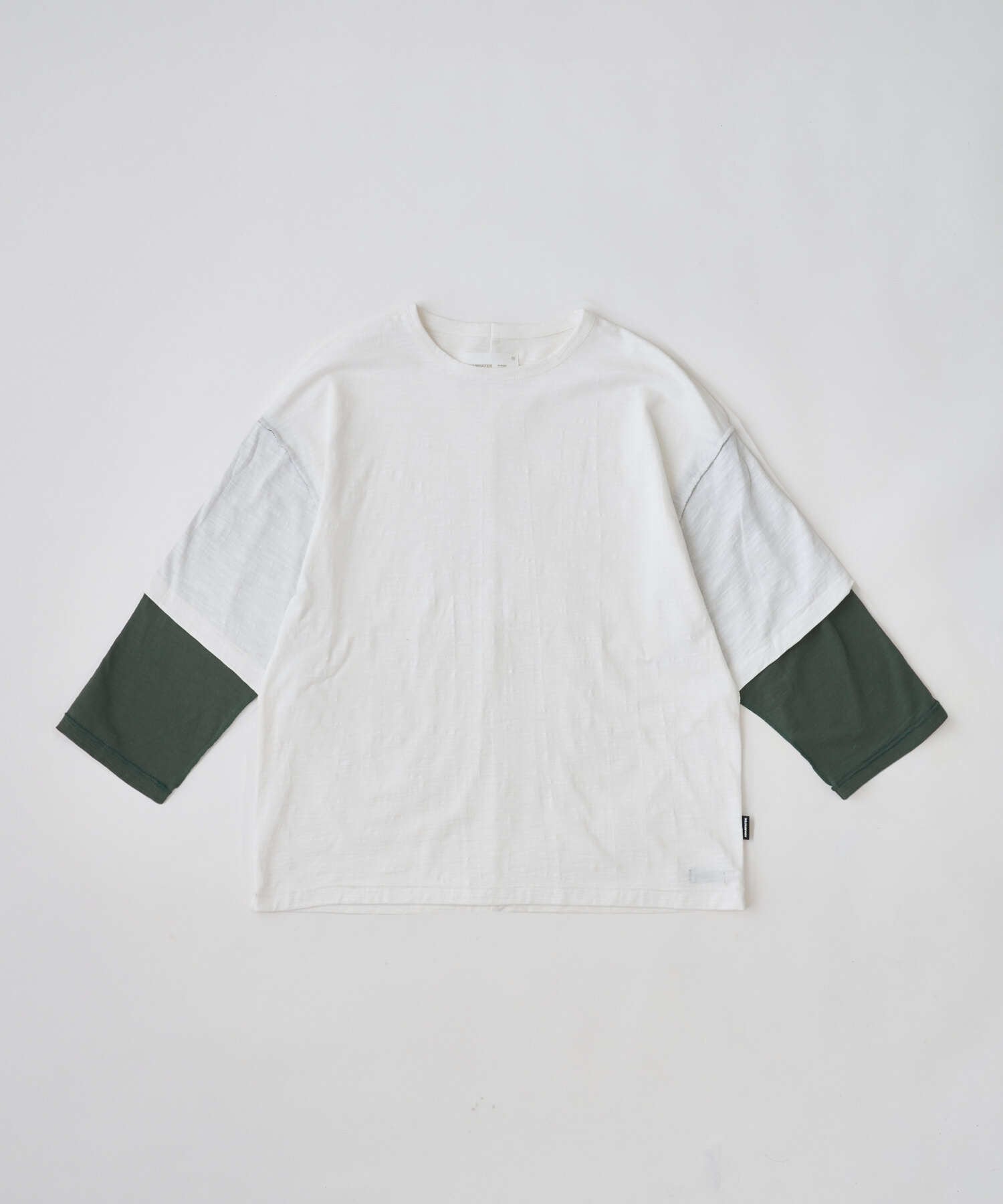 表情豊かなスラブ天竺を使用した、リバーシブル仕様の七分袖Tシャツ。