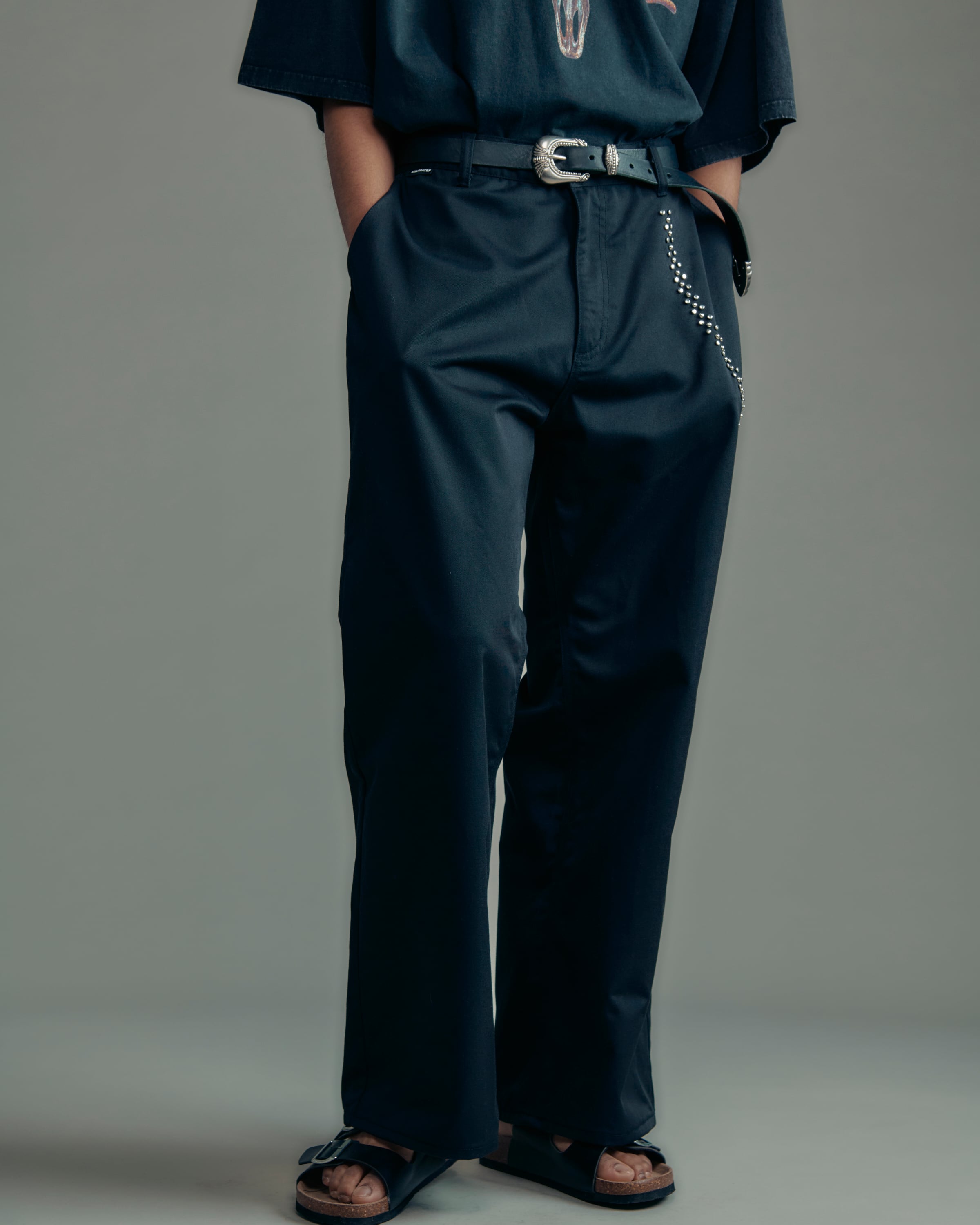 ADAM PATEK studded T/C twill flare wide trouser (BLK) AP2618018
