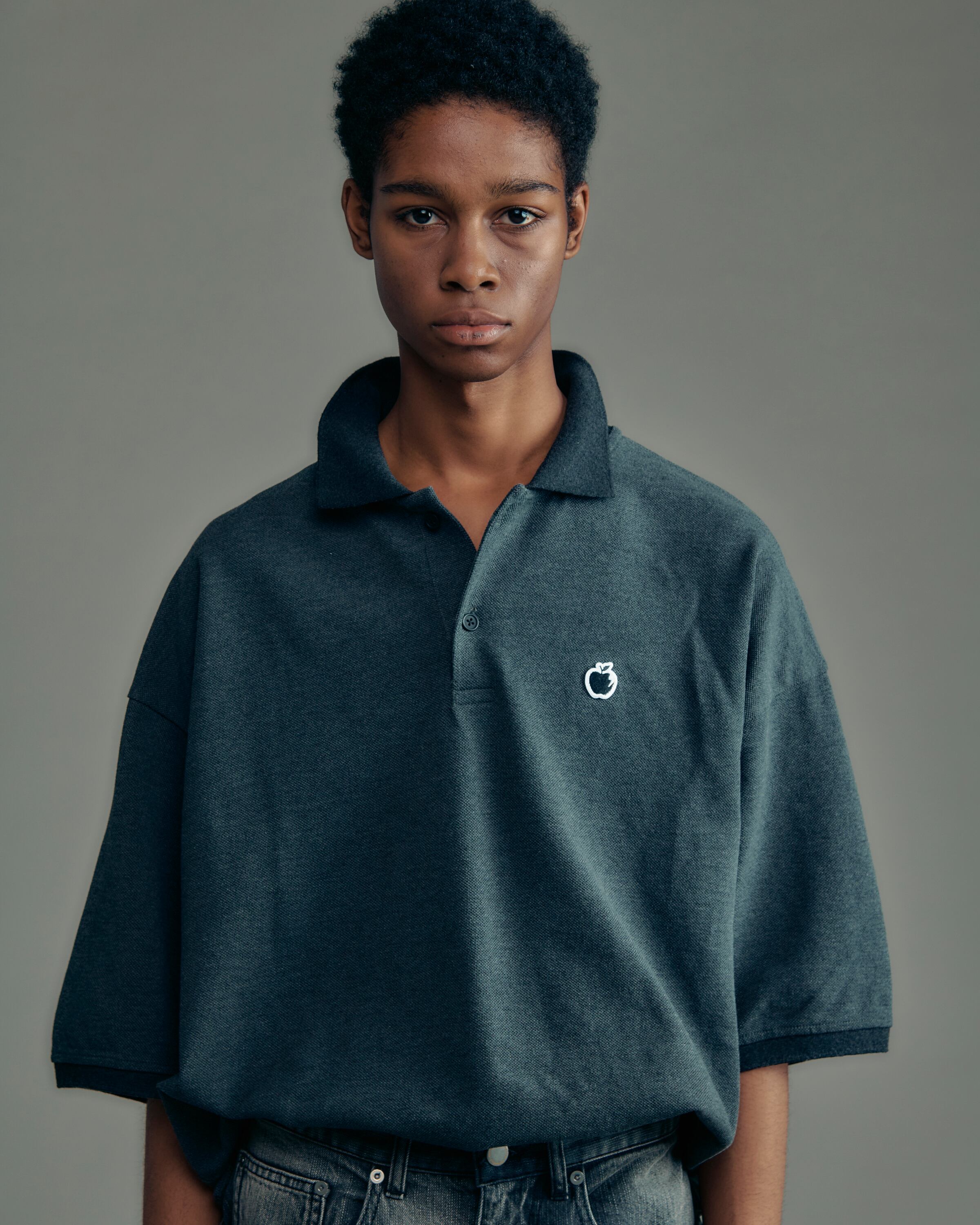 胸元にはブランドアイコン“BITE APPLE”をワンポイントで配置し、ミニマルな