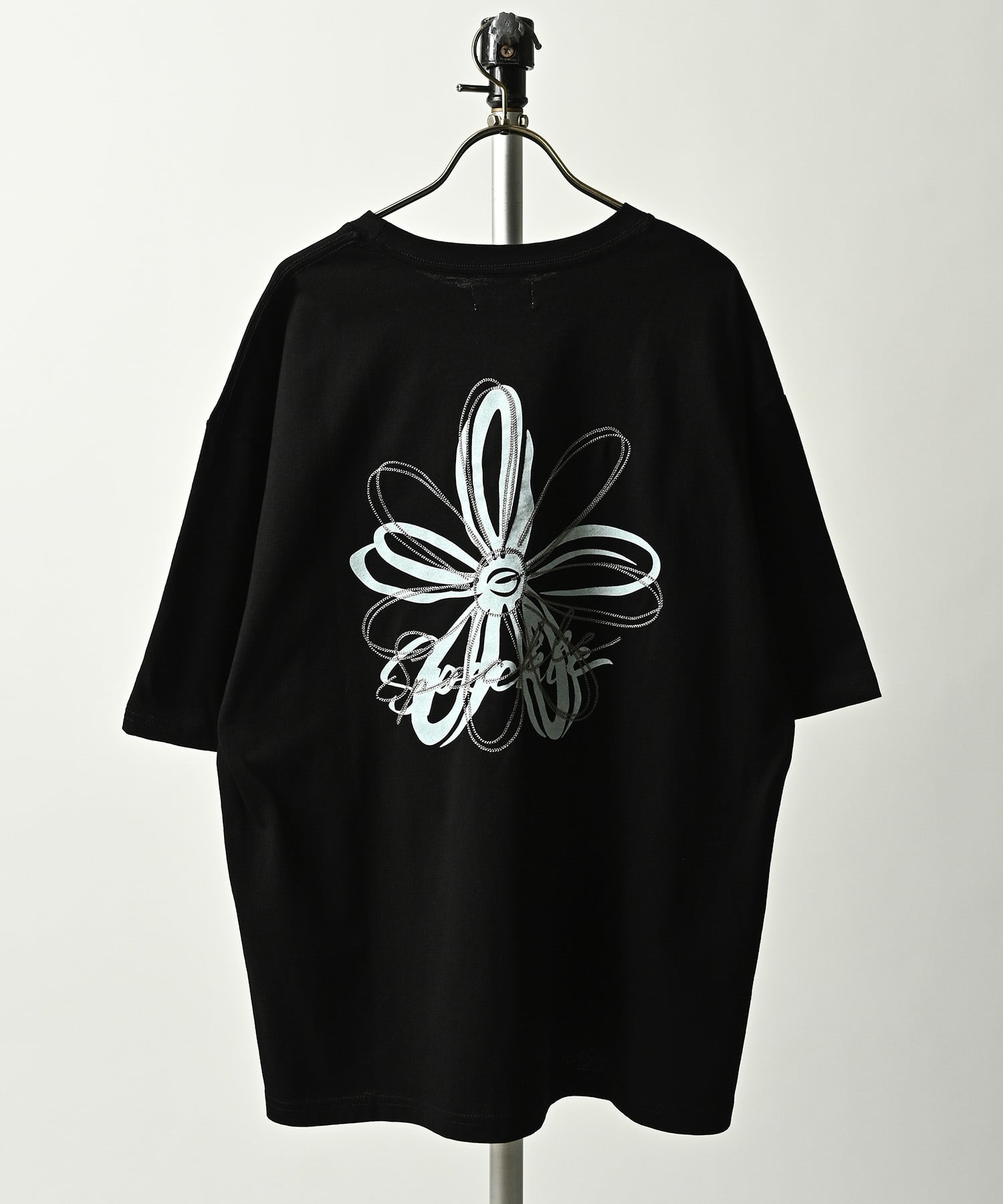 バックには大胆なフラワーグラフィックを施し、
