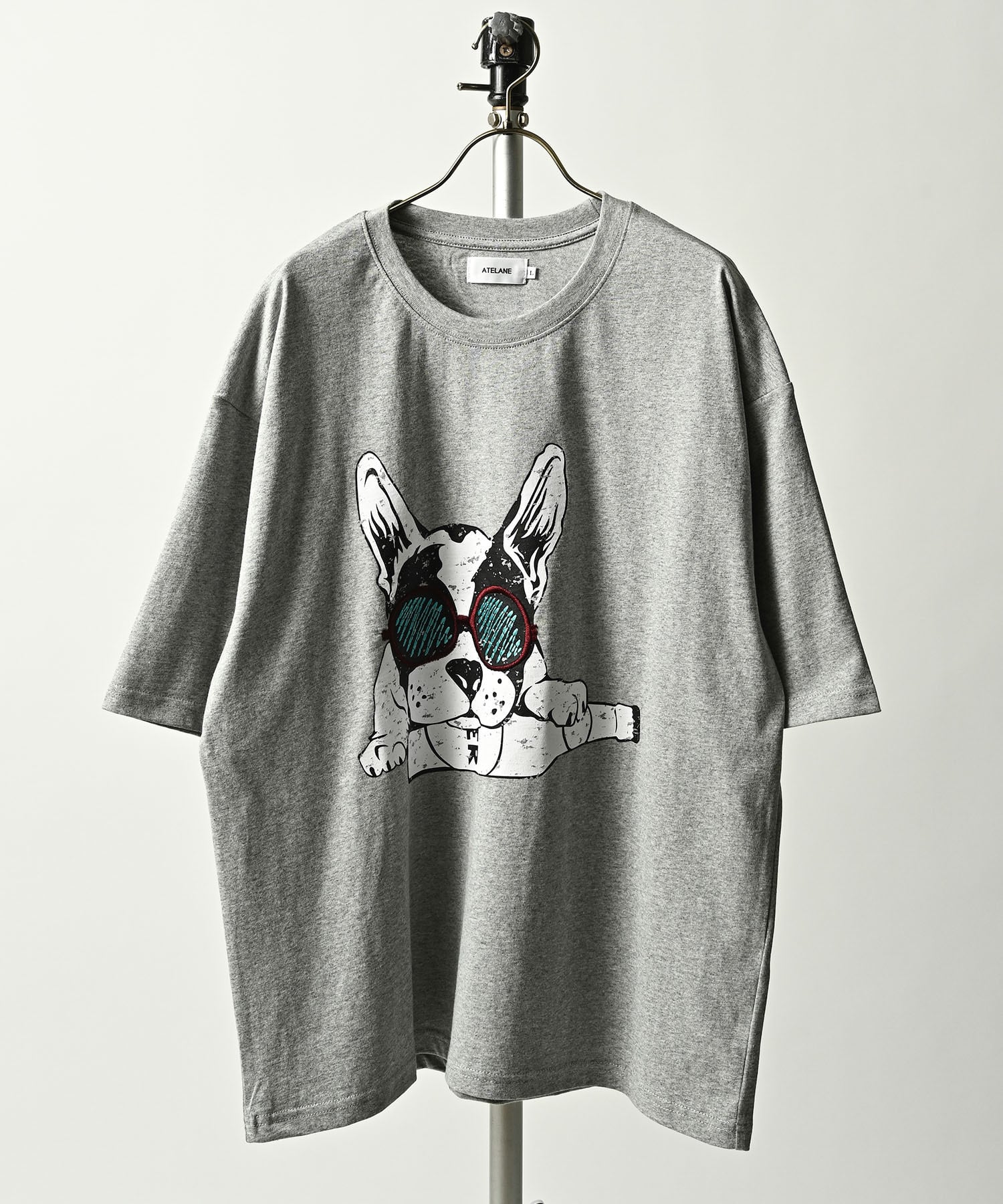 ATELANE 16OE Jersey French Bulldog Pattern T-Shirt (M/GRY) 26A-14065