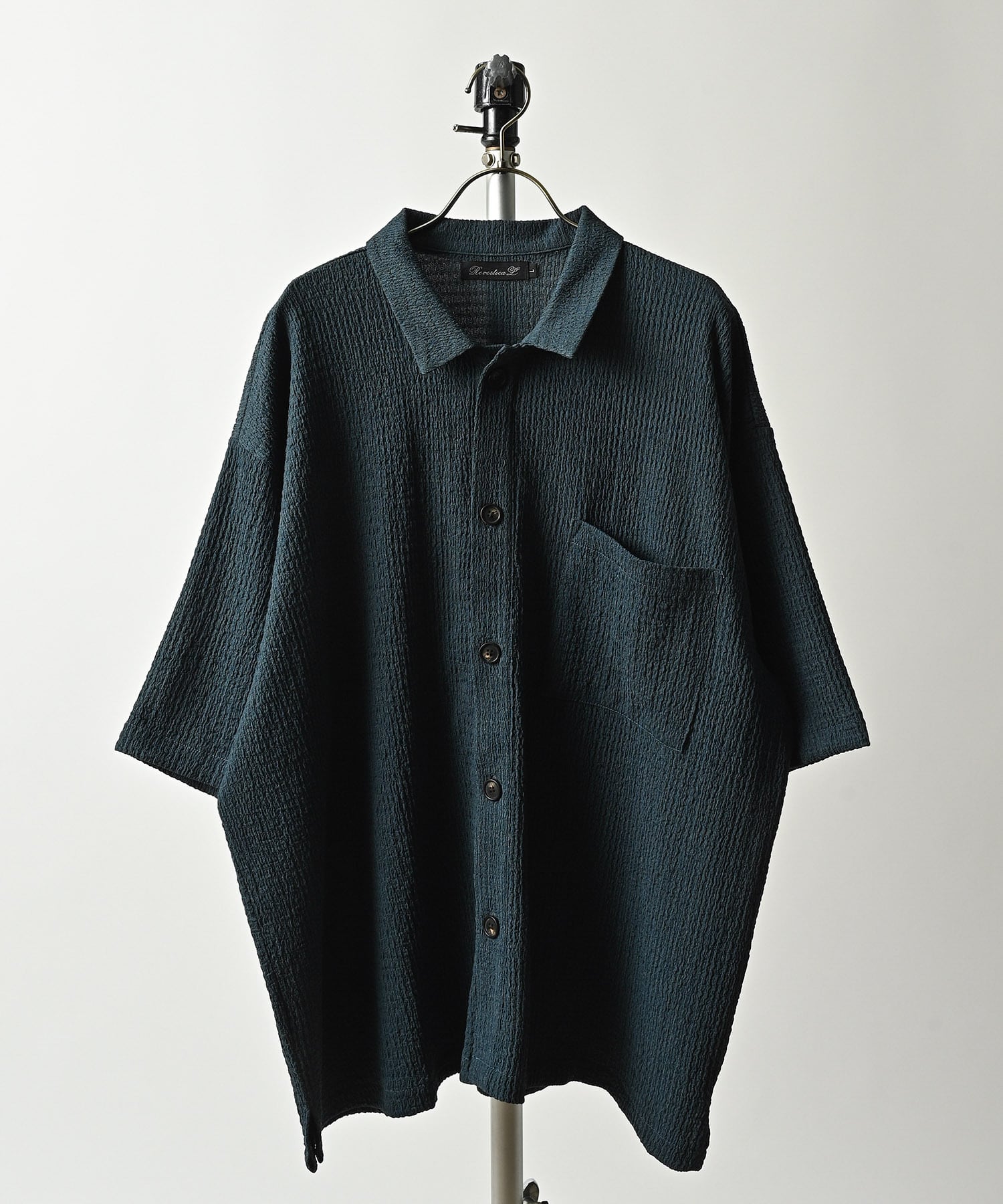 軽やかな楊柳素材を使用したこのシャツは、ポリエステル95%とポリウレタン5%の組成で、心地よい着用感を実現しています。リラックスしたスタイルながら、洗練された雰囲気を持つ一枚です。