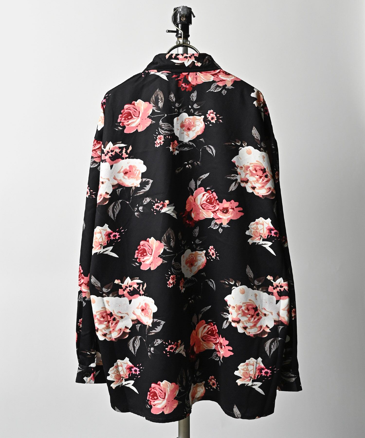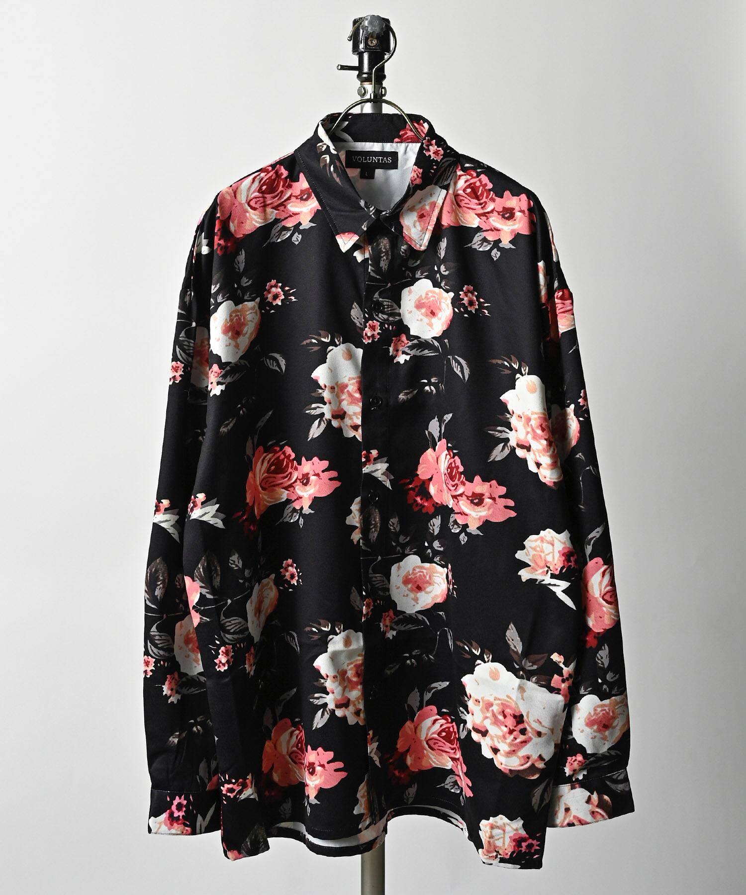 VOLUNTAS Floral print oversized silhouette shirt (BLK) 436010