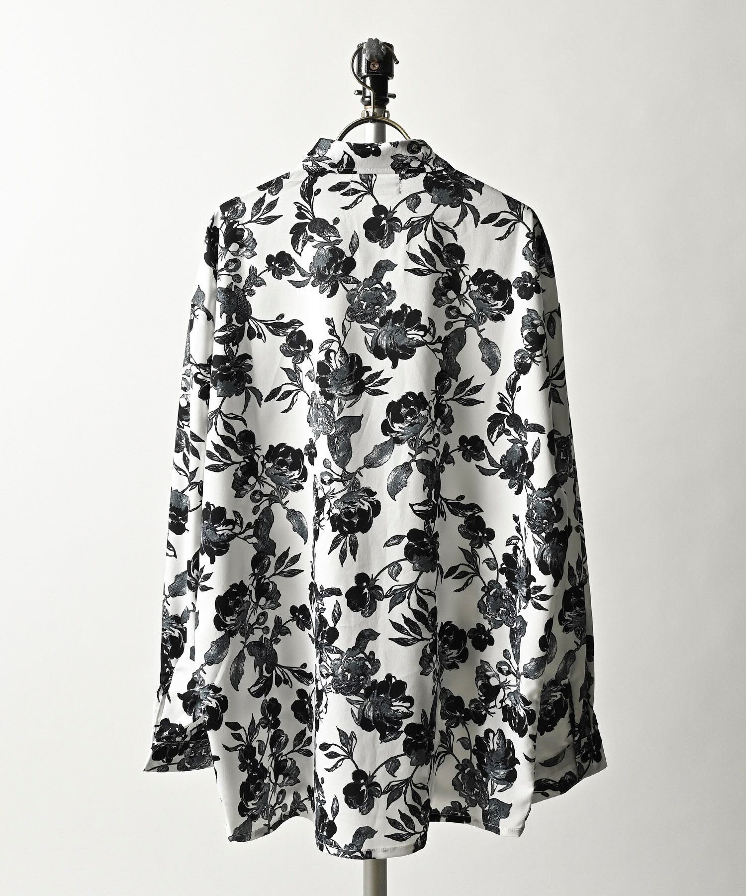 華やかなフラワープリントが特徴のこのシャツは、魅力的なデザインで、デイリーユースから特別な日まで幅広くお楽しみいただけます。ドレープ性に優れており、軽やかな着心地を実現します。
