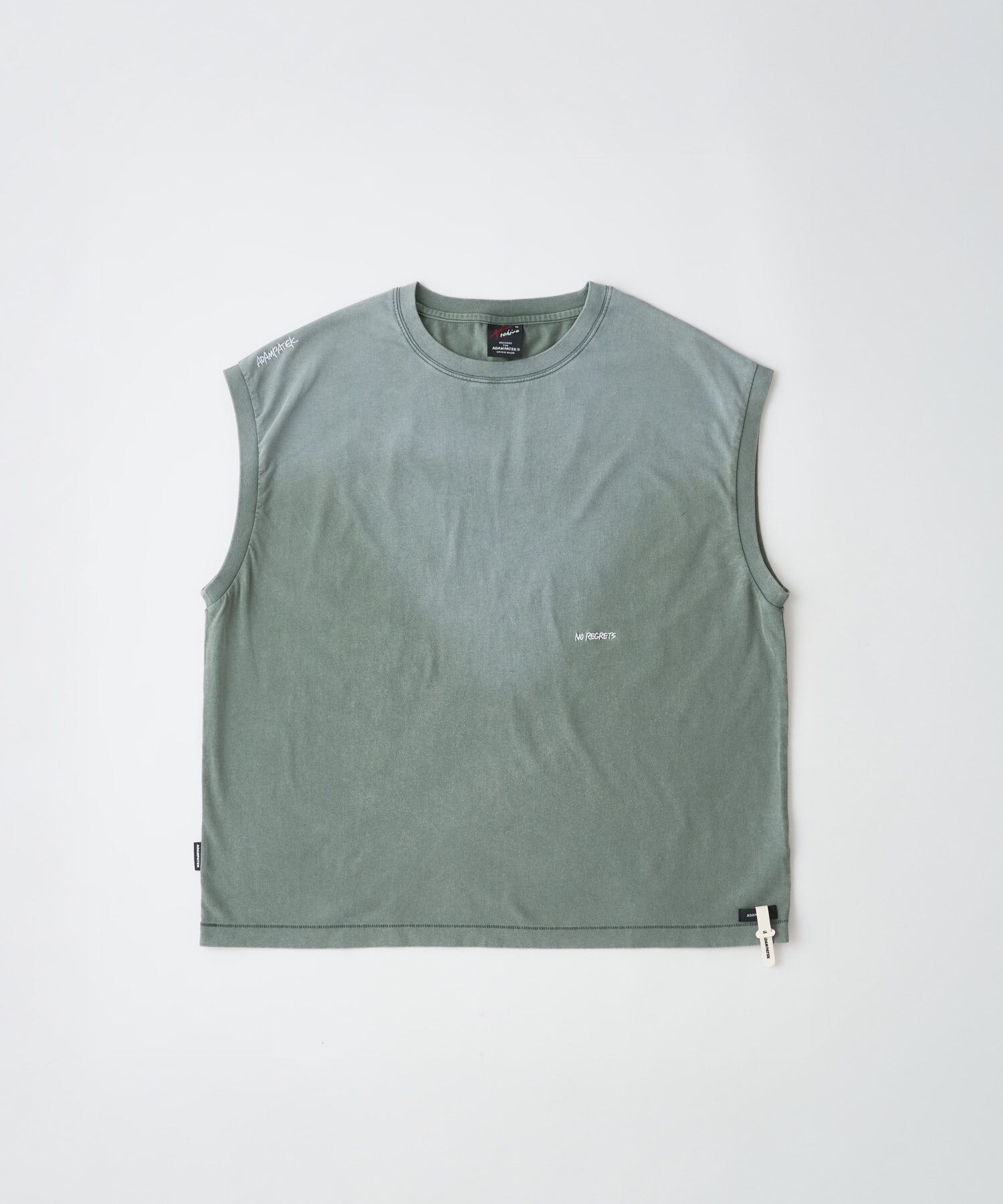 滑らかな40番手の双糸コットンを使用し、経年変化を思わせるエイジング加工を施したノースリーブ。